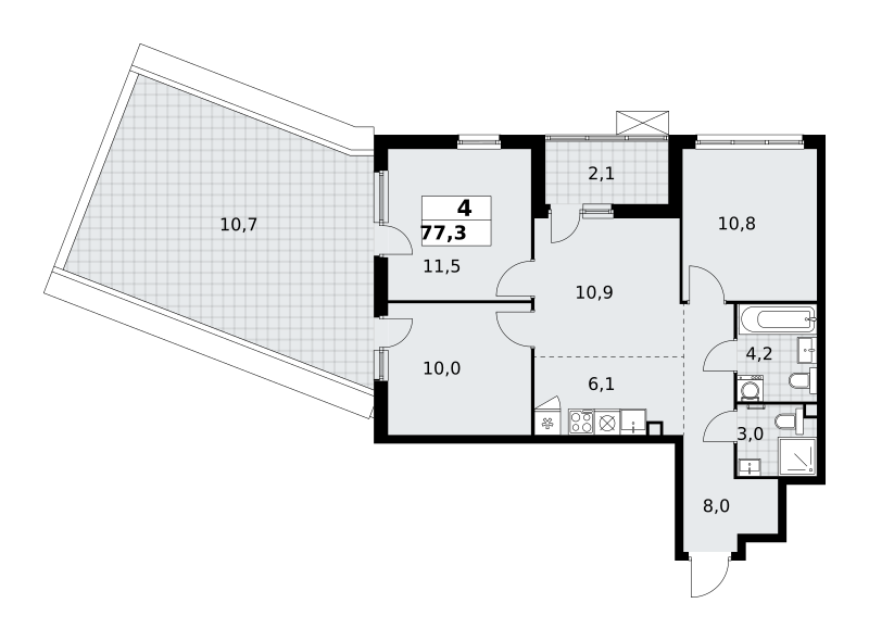 Продаются 3-к апартаменты площадью 60.74 кв.м. на 3-м этаже 20 этажного дома в ЭВОПАРК Сокольники от ГК ОСНОВА.