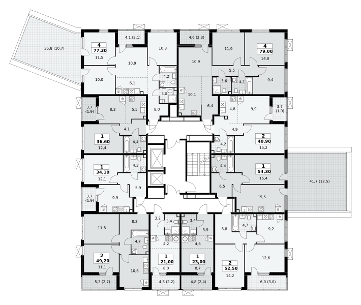 площадь комнат м²