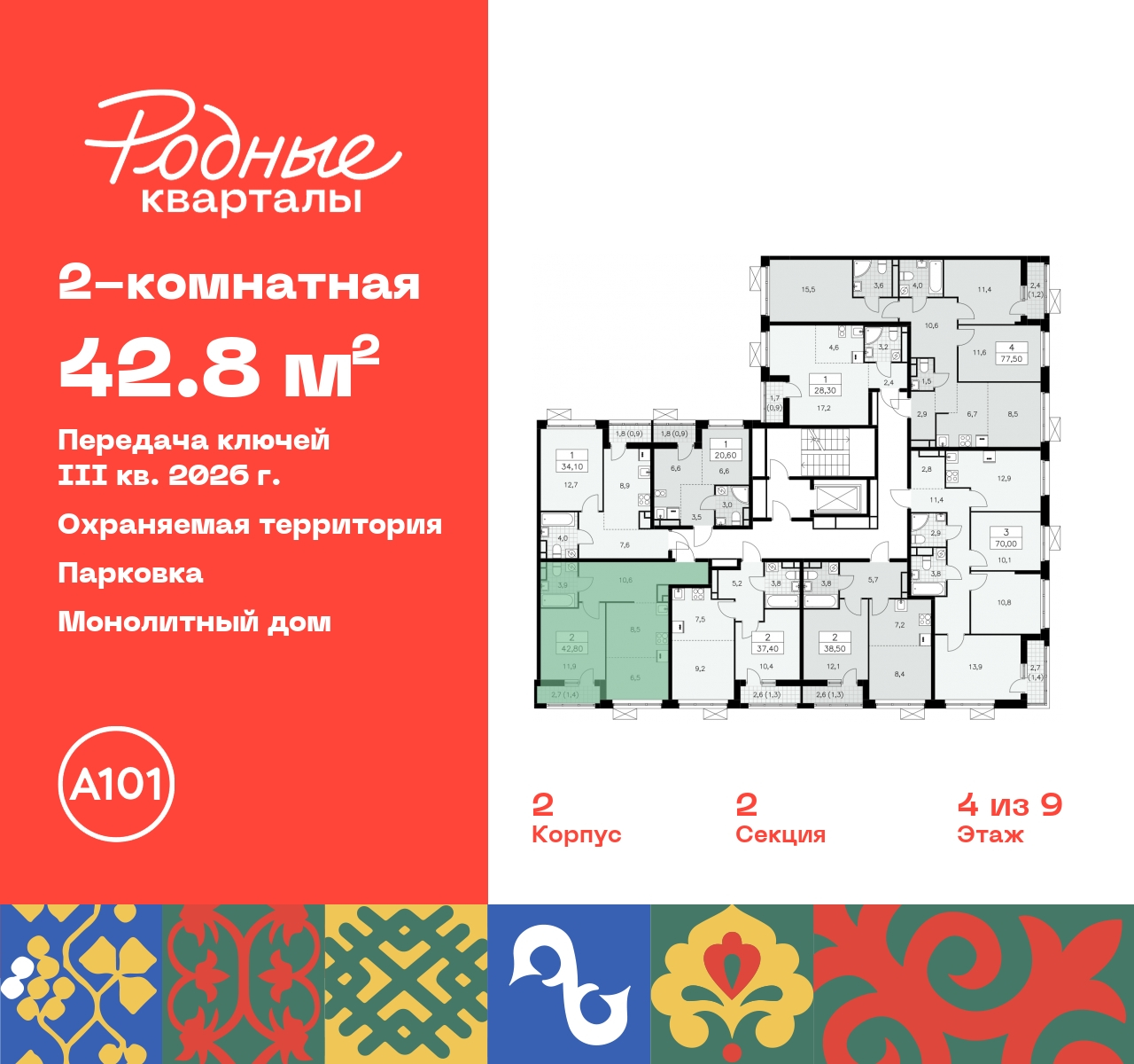 Дом монолитный, многоподъездный, переменной этажности, от 8 до 16 этажей. Квартира находится в 7-й секции высотой 11 этажей в корпусе 7.1. На этаже 5 квартир. В подъезде 1 пассажирский и 1 грузовой лифт. Начало строительства - 2 квартал 2025 года. Окончание строительства - 1 квартал 2028 года. Оформление сделки по договору долевого участия.