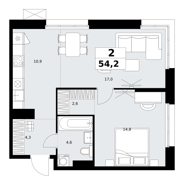 2-комн. квартира от застройщика с отделкой в ЖК "Прокшино" на 13 этаже. Общая площадь: 59.3 кв.м., жилая: 27 кв.м., площадь просторной кухни-столовой: 16.9 кв.м. Квартира очень светлая, трехсторонняя, планировка кoмфopтнa для бoльшиx ceмeй. В квартире одна лоджия, один совмещенный и один раздельный санузел. Высота потолков 2.95 м.