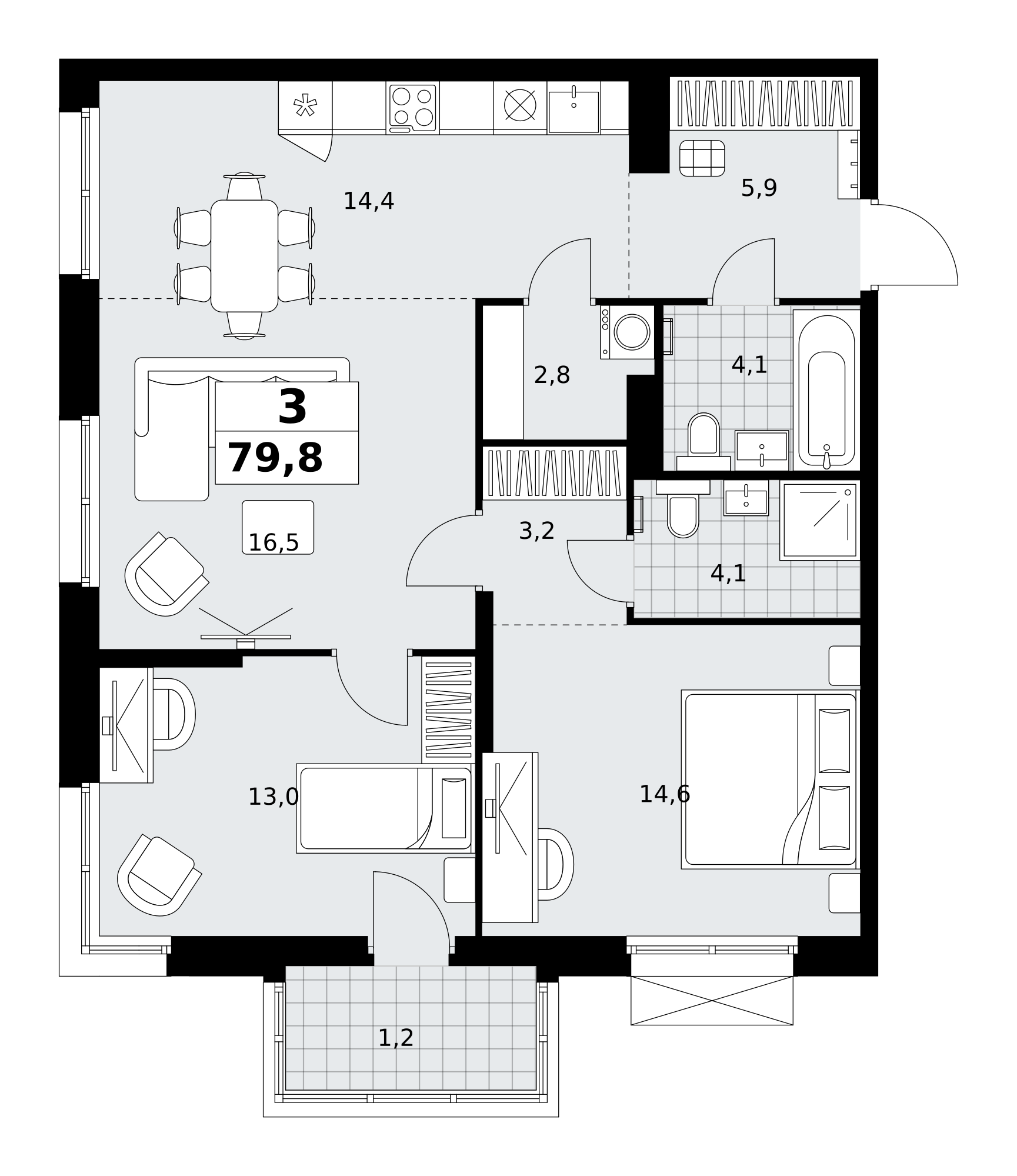 площадь кухни м²