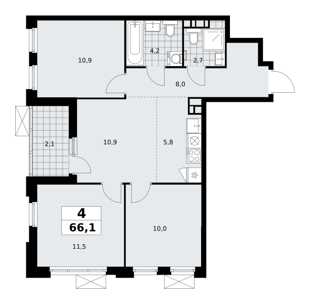 Квартира находится в корпусе 4.6. Дом монолитный, одноподъездный, высотой 15 этажей. На этаже 10 квартир. В подъезде 1 пассажирский и 1 грузовой лифт. Начало строительства - 3 квартал 2023 года. Окончание строительства - 2 квартал 2026 года. Оформление сделки по договору долевого участия.