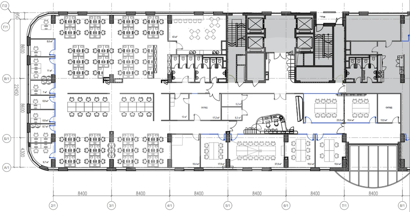 *Количество рабочих мест рассчитано автоматически: от 4,5 до 12 м² на человека.