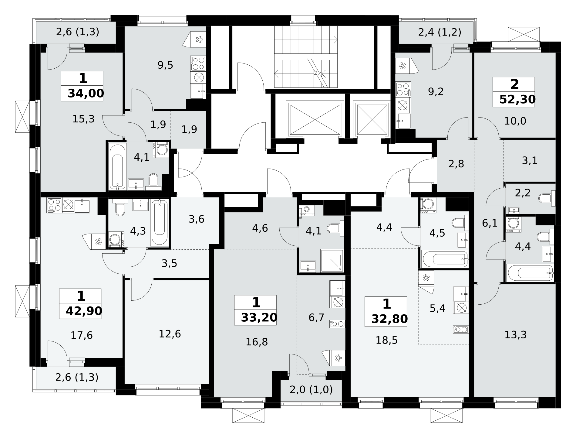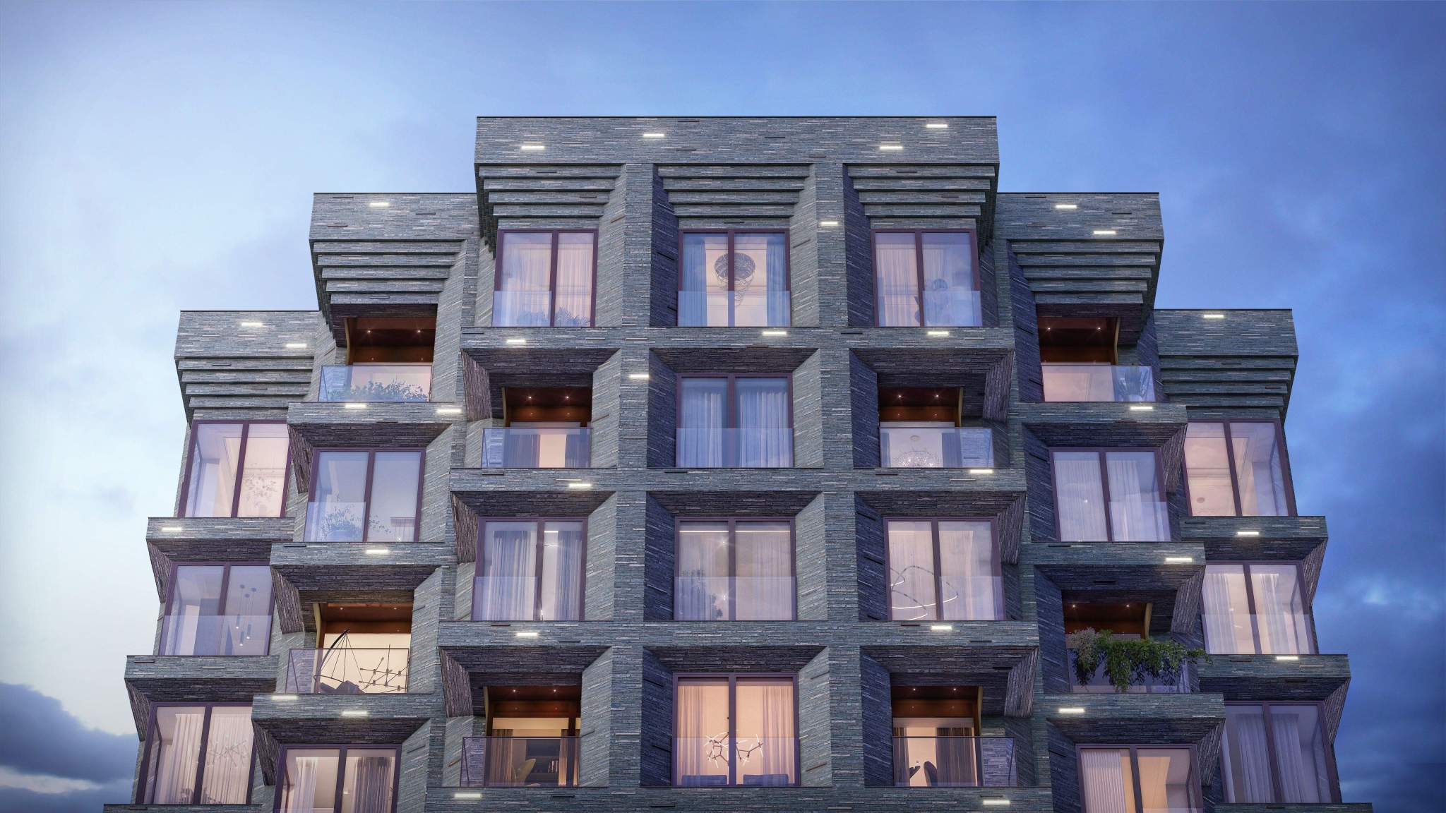 - Квартиры с террасами, мастер-спальнями и сквозными планировками.