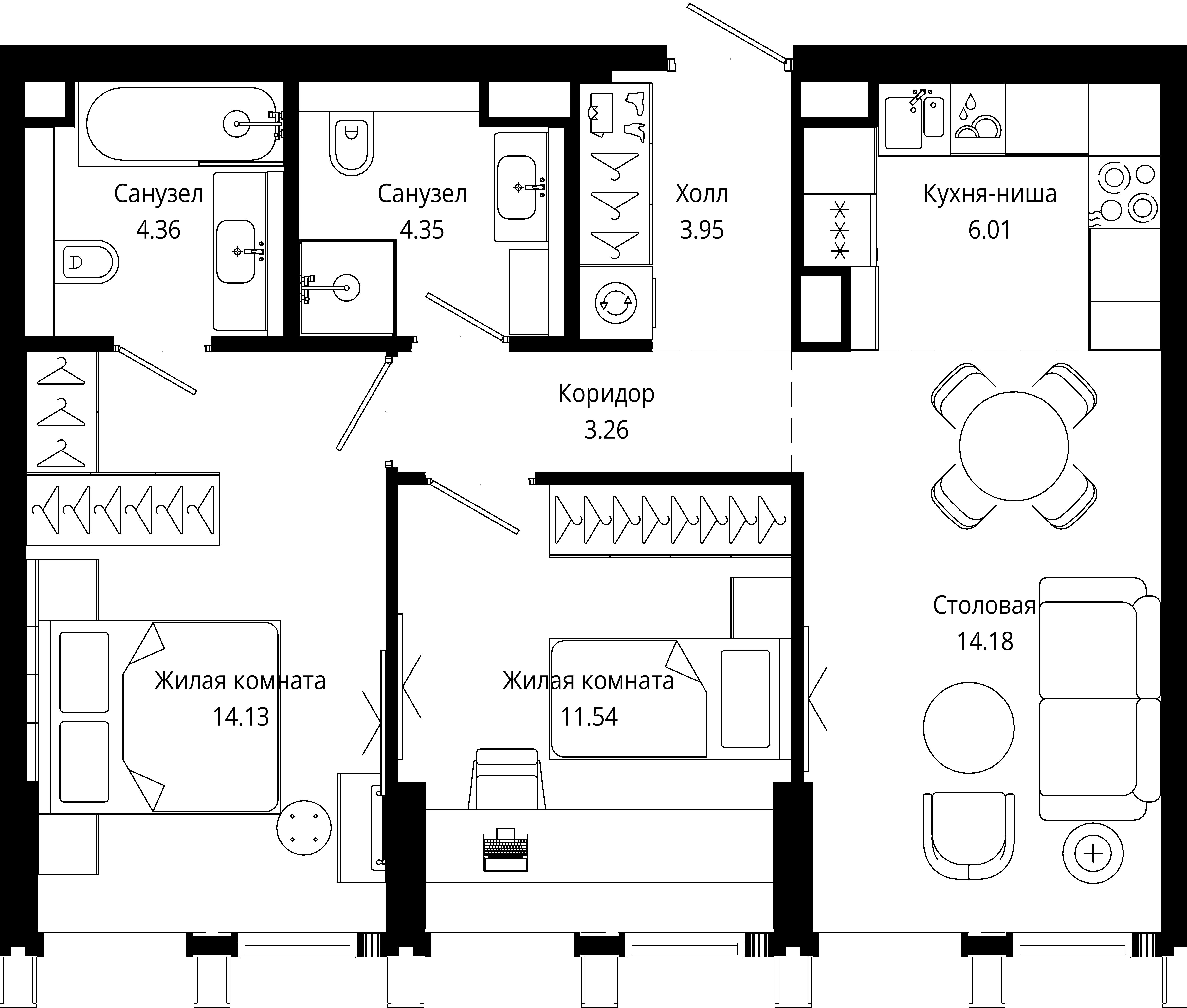В проекте широкий выбор умных планировок: от продуманных студий до трёхкомнатных квартир. Есть варианты с мастер-спальней с собственной ванной и гардеробной, кухней-гостиной, сквозным санузлом и кладовой. Благодаря окнам в пол, балконам и террасам в помещениях будет много света и дополнительного пространства. Можно купить квартиру с готовой отделкой и видом на Останкинскую башню. Артикул - 1040250