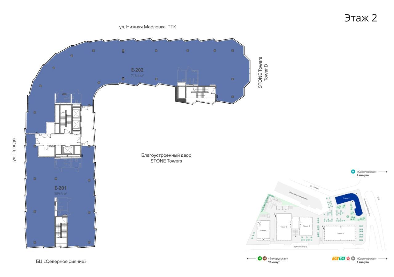 ПЛАТИМ АГЕНТАМ. Входим в ассоциацию профессионалов коммерческой недвижимости КОКОН. Бизнес резиденция клубного формата Stone Towers - Tower E находится в 4-х минутах от транспортно-пересадочного узла Савеловская, откуда открывается доступ к радиальной и Большой кольцевой линиям метро, а также к МЦД 1 и МЦД 4. Описание помещения: Целиком этаж - 1107,7 м2. Панорамное остекление с возможностью естественного проветривания. Максимальный уровень естественного освещения. Две мокрые точки в блоке.