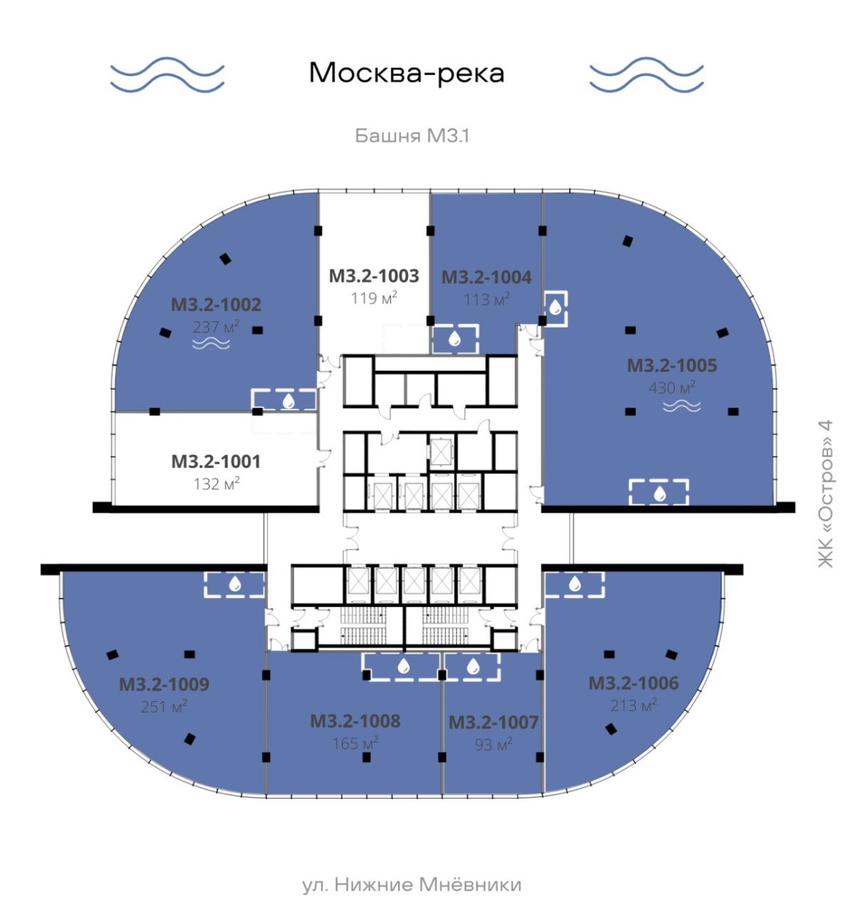 РАБОТАЕМ С АГЕНТАМИ И ПЛАТИМ! РЕНТАВИК— участник ассоциации агентств КОКОН. STONE Мневники 3, Башня М3.2 - премиальный бизнес-центр на первой линии Москвы-реки. Проект расположен в престижном западном направлении столицы, где развивается новый деловой кластер с ограниченным предложением офисов класса А и стабильно высоким спросом. Описание помещения: Отдельный блок на этаже. Наличие мокрой точки в блоке. Панорамное остекление с возможностью естественного проветривания. Вид на ул. Нижние Мневники.
