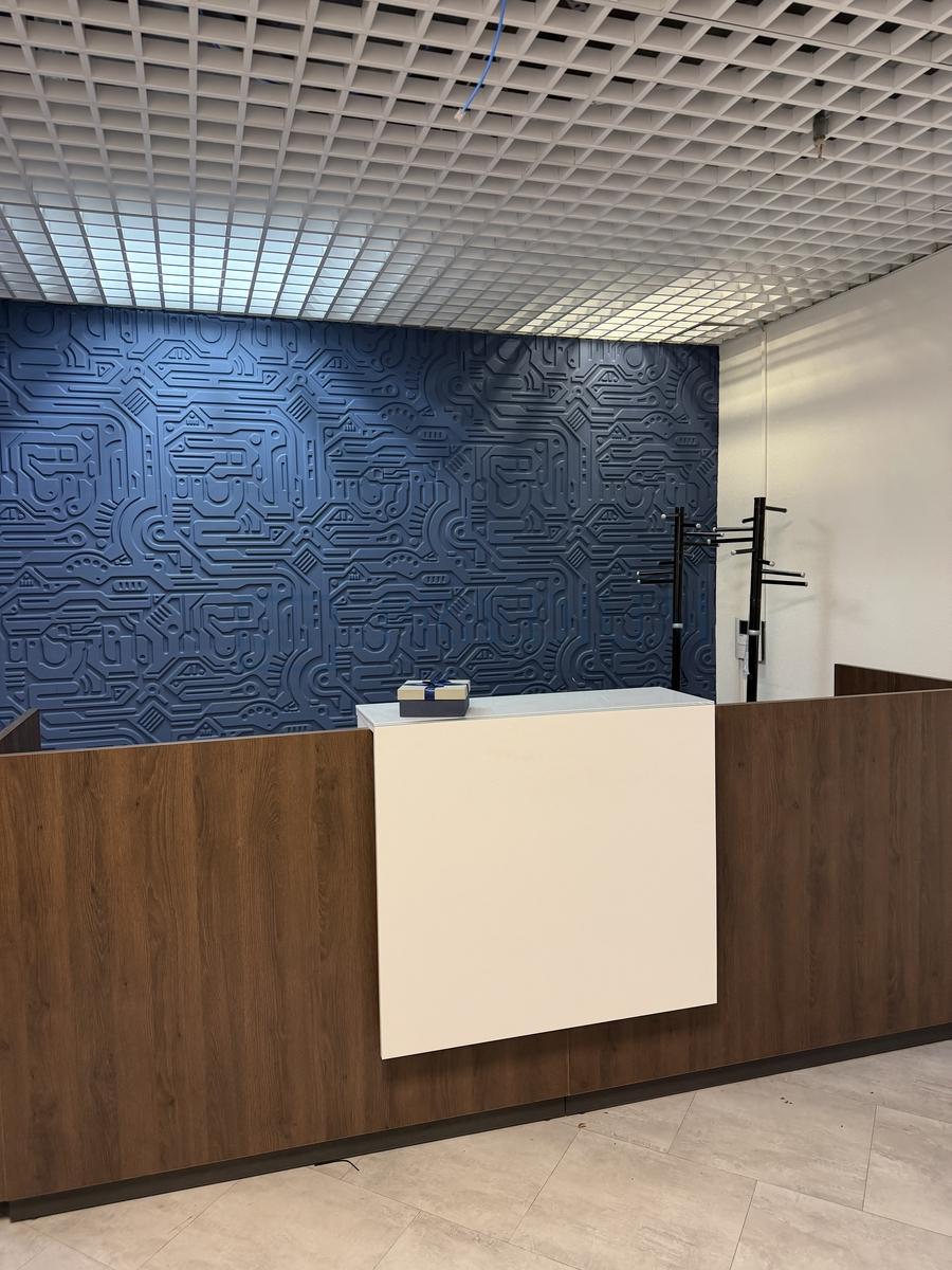 - Выделена зона рецепшн. Кабинеты для руководящего состава, зоны open space, архив, серверная.