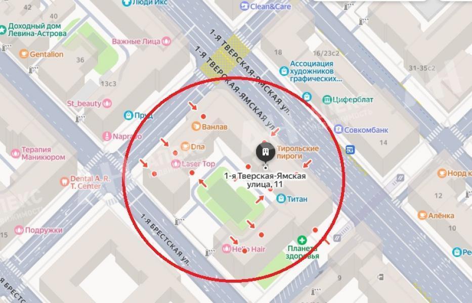 Лот №1078139 Предлагаются в аренду помещения разных площадей на центральной улице г.Москвы 1-я Тверская-Ямская.