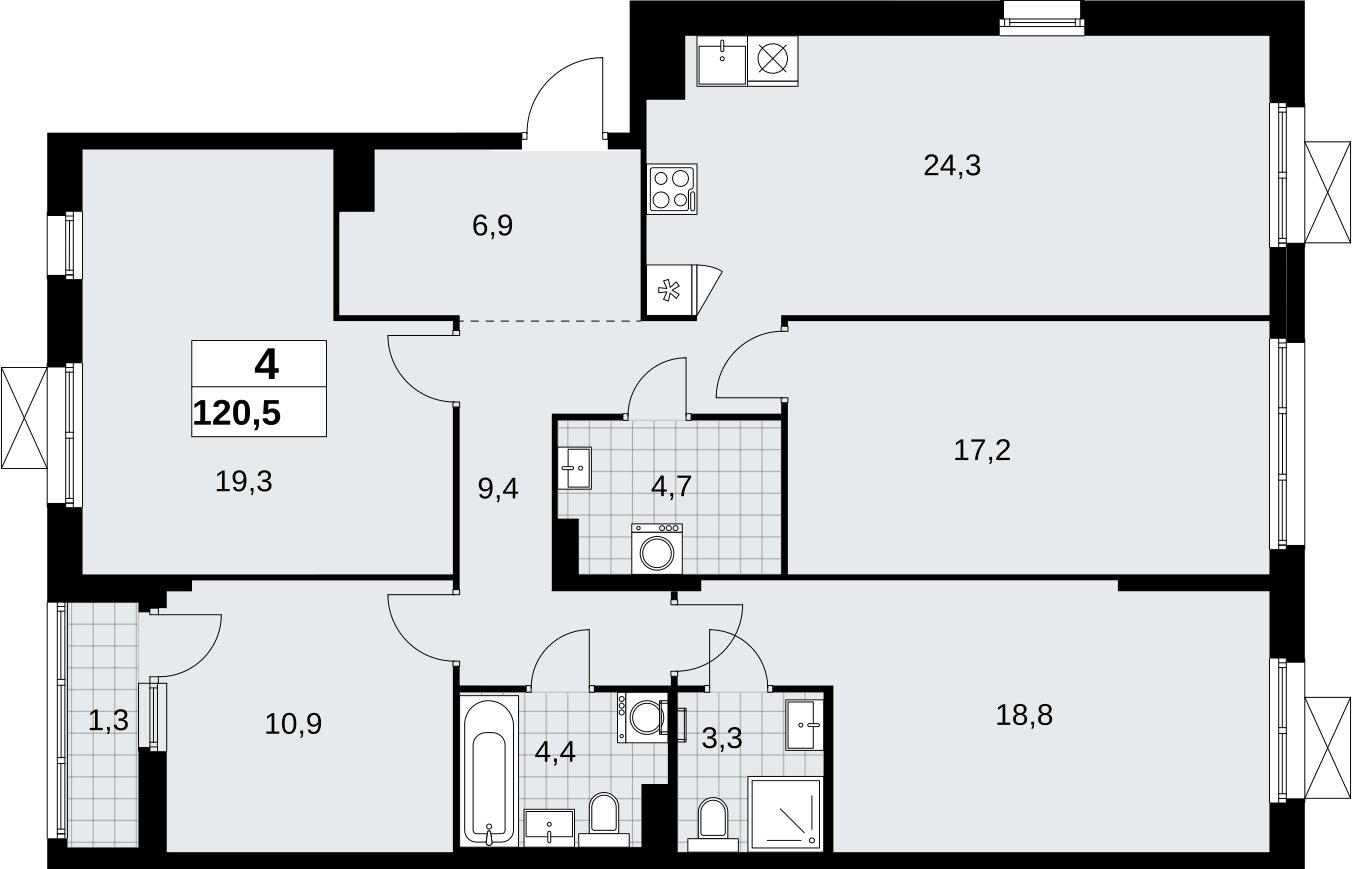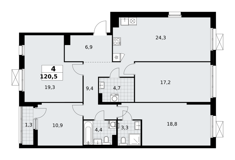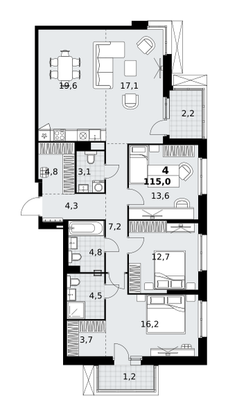 Купить 4к квартиру 165 м² в ЖК Южные сады