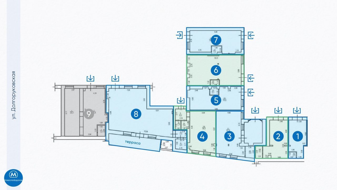 Здание представляет собой комплекс из двух корпусов - двухэтажный кирпичный особняк Дом А. Зиберта 1891 года постройки по проекту архитектора Р.И. Клейна и четырехэтажное офисное строение во второй линии от Долгоруковской улицы. Описание помещения: Помещение с отдельным входом со двора.