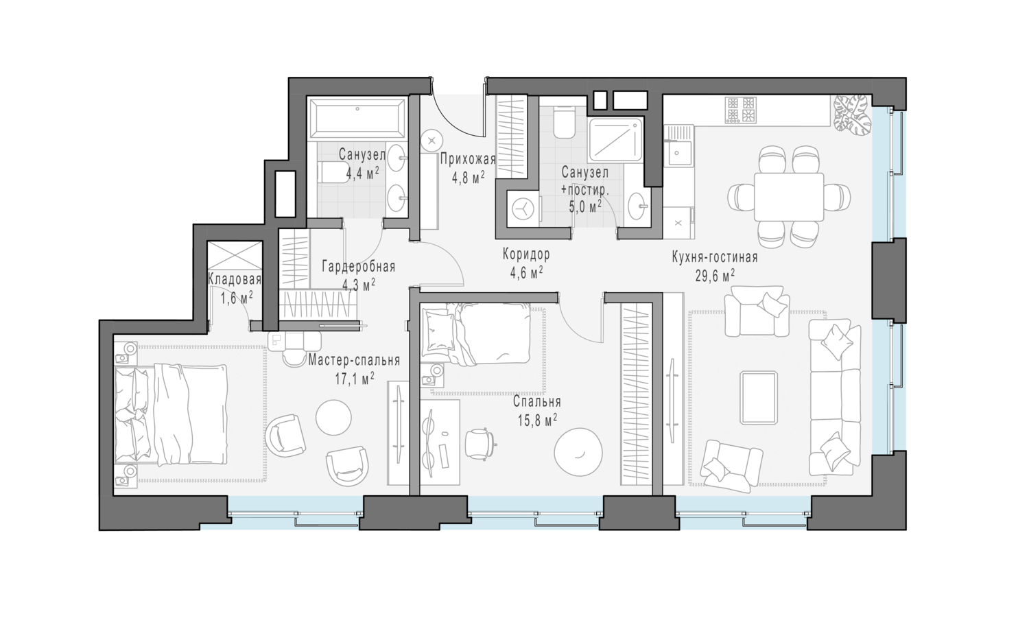 1к квартира 82 м² в квартале Клубный квартал Фрунзенская набережная