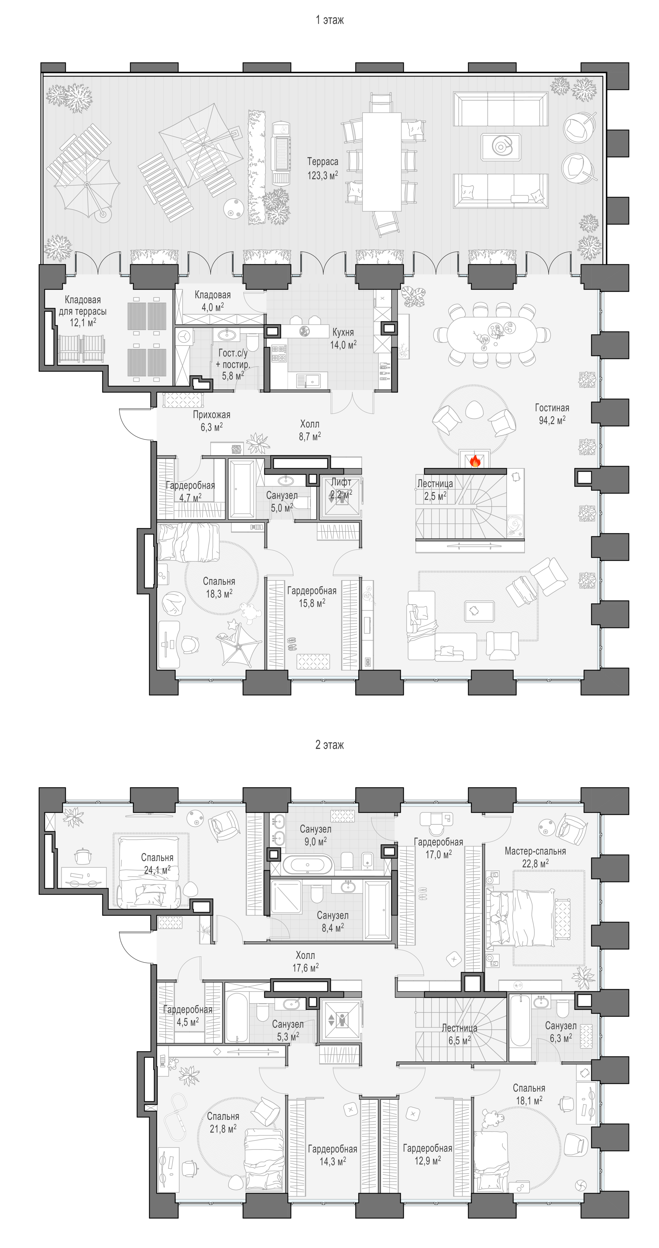 • Двухэтажный пентхаус 422 м².
