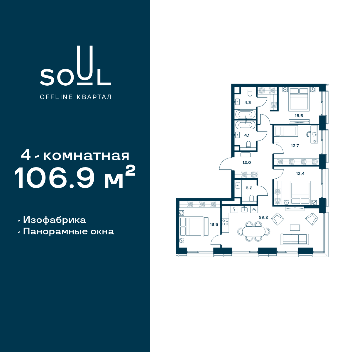 Купить 2к квартиру 88 м² в ЖК RiverSky