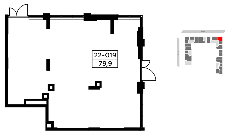 Помещение располагается на 1 этаже здания. Имеется отдельный вход с улицы с возможностью подъезда фургона для выгрузки товара. Помещение оборудовано системой холодного водоснабжения, водонагревателем, санузлом, интернетом и автономным электрическим отоплением. Рядом имеются автопарковка и остановки общественного транспорта. Перед зданием прогулочная зона с фонтаном.