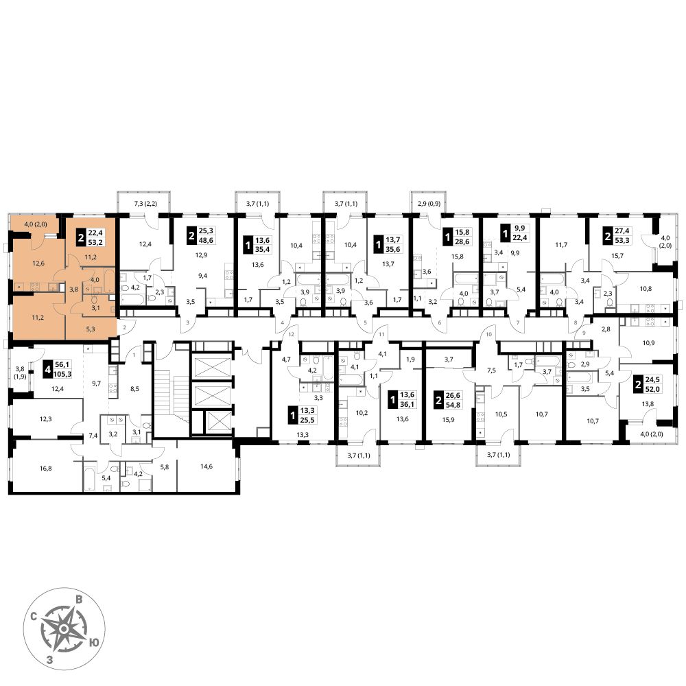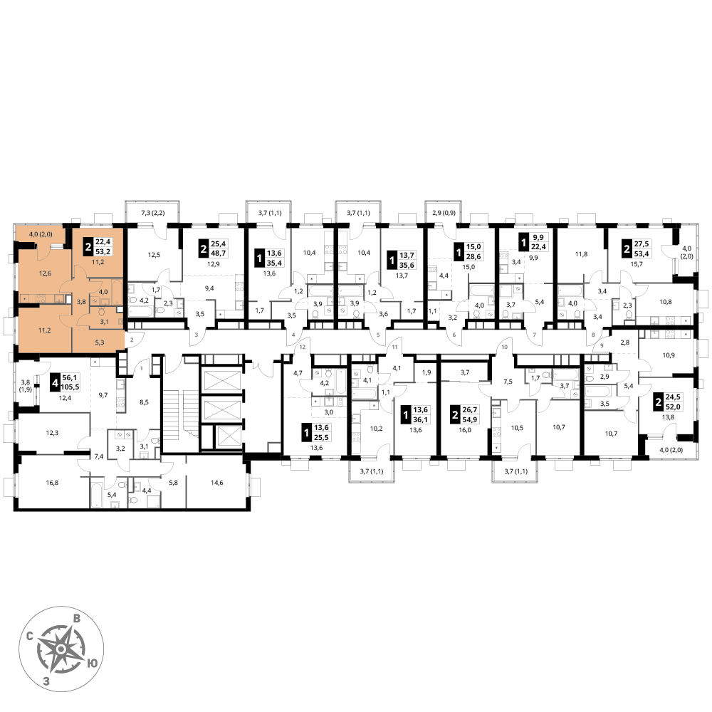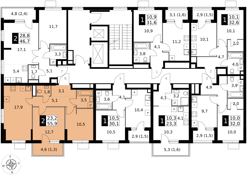 площадь комнат м²