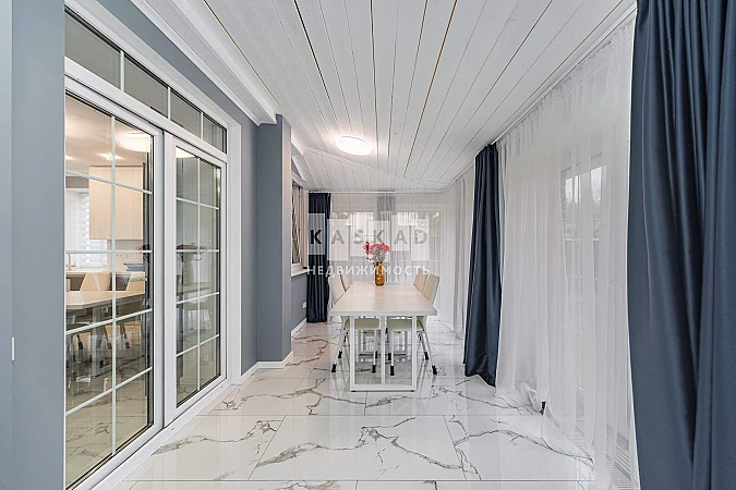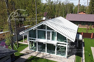 В доме 3 спальни, 3 санузла, 2 гардеробные комнаты, сауна из канадского кедра, зимний сад с выходом на просторный солнечный участок с видами на хвойный лес.