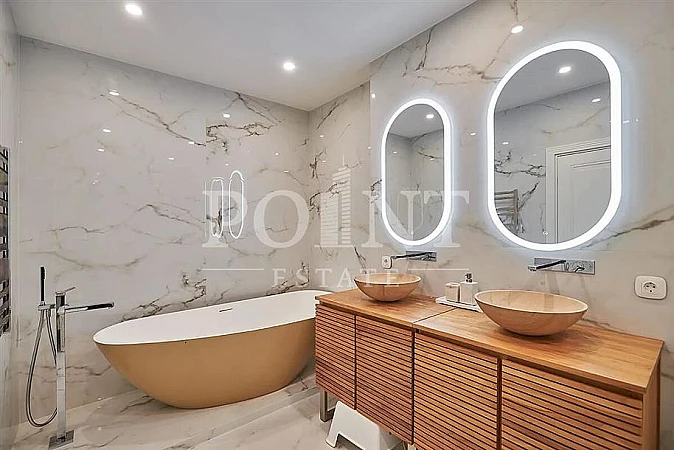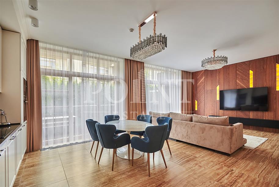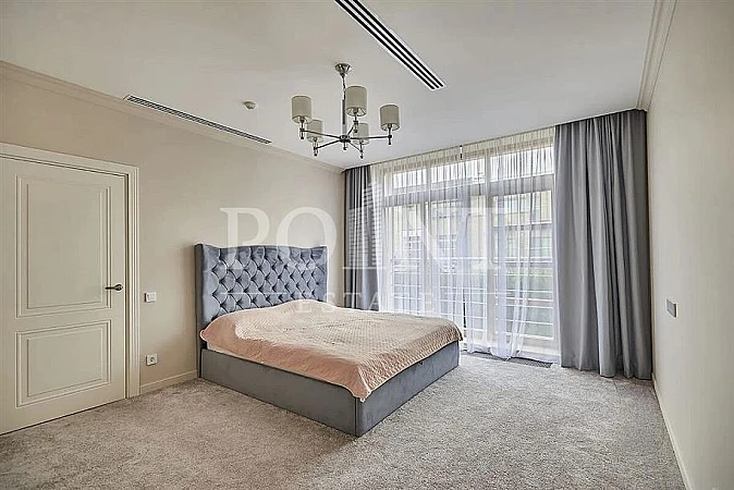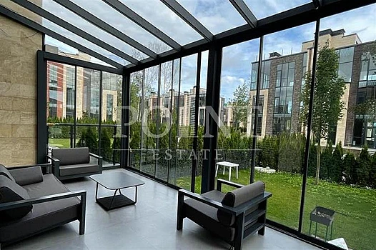 Лот: 104928. На продажу предлагается трехэтажный таунхаус, под ключ с мебелью, площадью 290 кв.м.,, расположенный на участке правильной формы, размером 3 сотки, с парковыми деревьями в коттеджном поселке "Парк Авеню". Планировка: 1-й этаж: гостиная-столовая-кухня, бойлерная, санузел, котельная, гардеробная, постирочная, кладовая, прихожая, терраса; 2-й этаж: спальня с гардеробной и санузлом, спальня с гардеробной, спальня, санузел, балкон, холл, терраса; 3-й этаж: две спальни с гардеробными и санузлами, балкон, холл, терраса. Имеется встроенный гараж на три машиноместа. Поселок построен на живописной территории в окружении лесного массива и занимает площадь около 18 гектар. Территория огорожена высоким забором, въезд осуществляется через контрольно-пропускной пункт, где дежурят сотрудники службы безопасности. В поселке работают системы видеомониторинга, осуществляется патрулирование