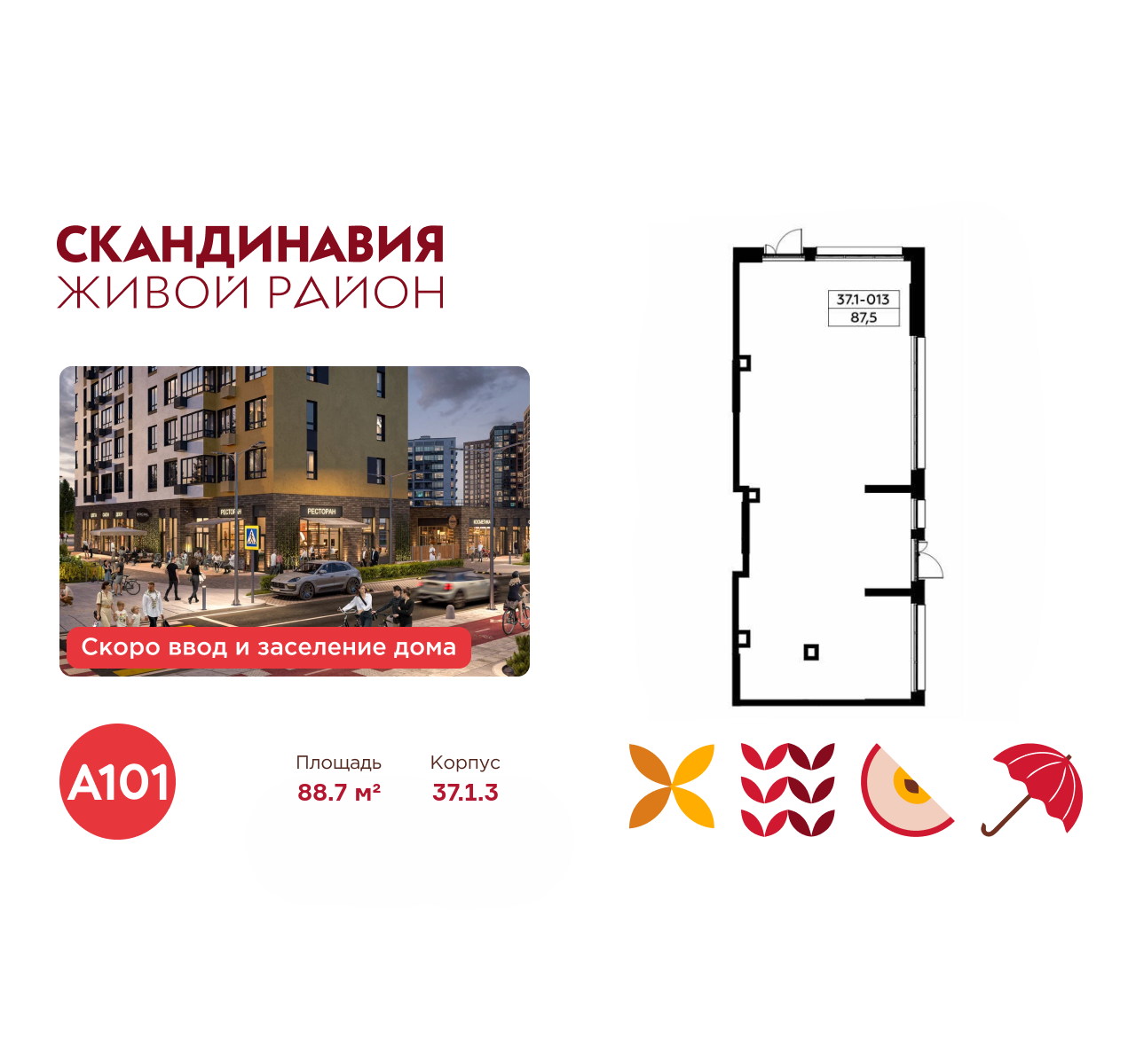 Сдается помещение площадью 88.70. на 1-м этаже ЖК «Скандинавия». Трафик 874 человек в день.