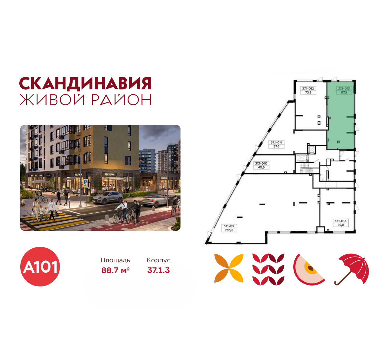 Всё это обеспечивает высокий пешеходный трафик и востребованность коммерческих объектов. Любой объект инфраструктуры «Скандинавии» находится в шаговой доступности. Многие жители не покидают локацию в течение дня, пользуясь услугами и делая покупки.
