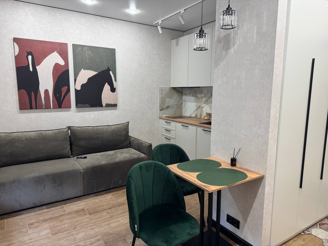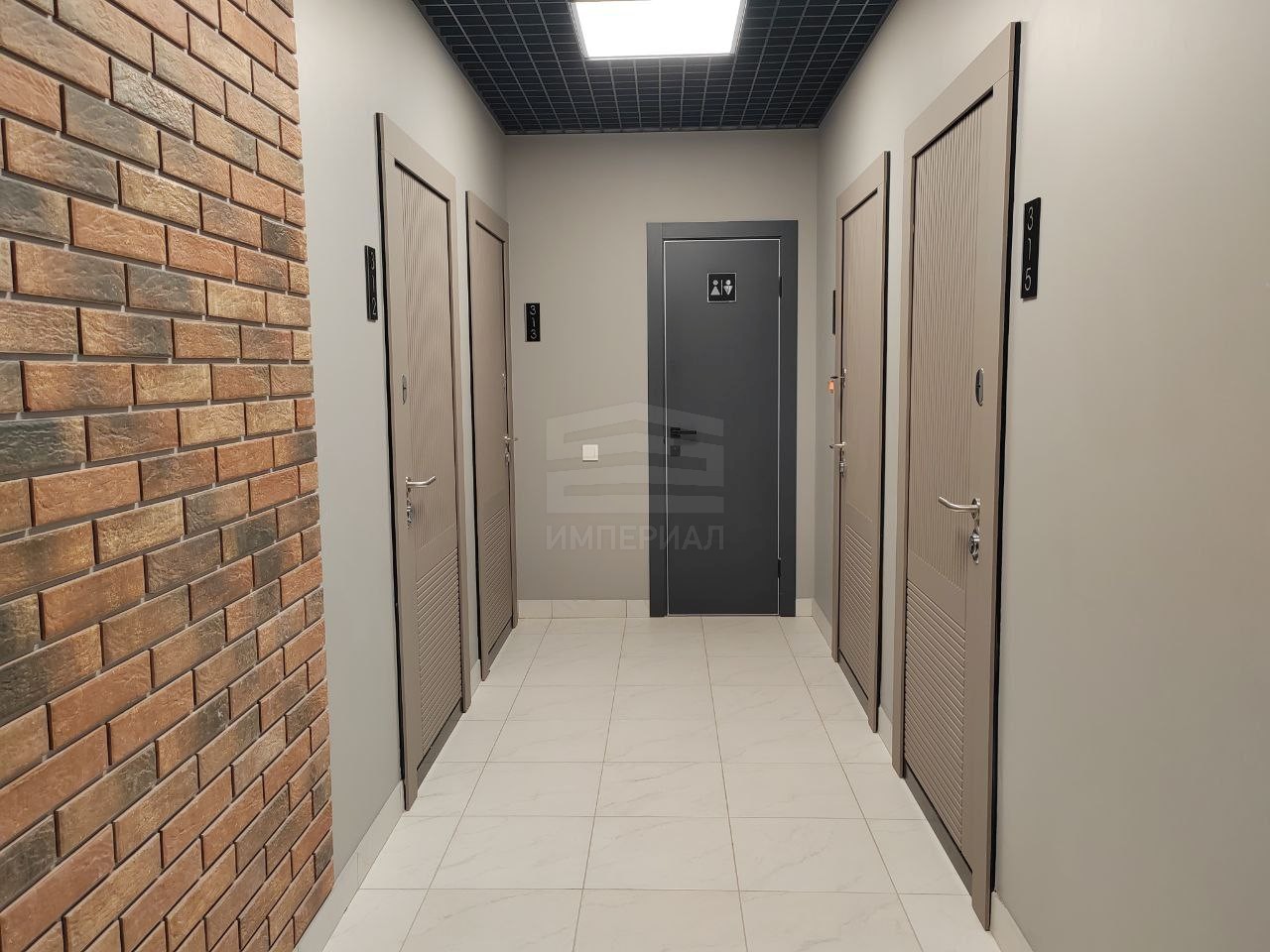 Стильный внутренний интерьер общих зон в лофт-стиле. Высота потолков 2.6 м.