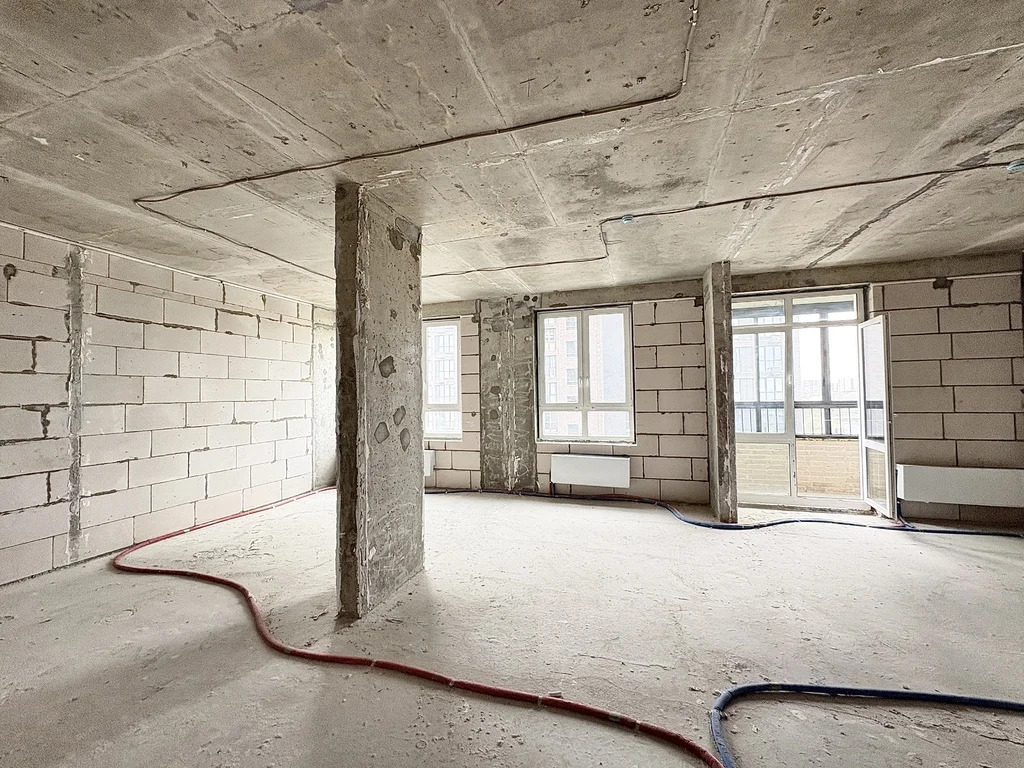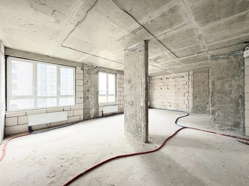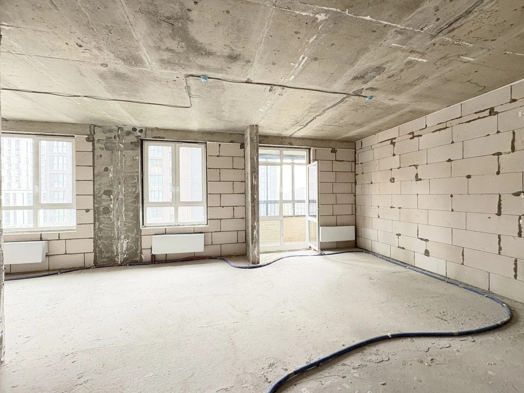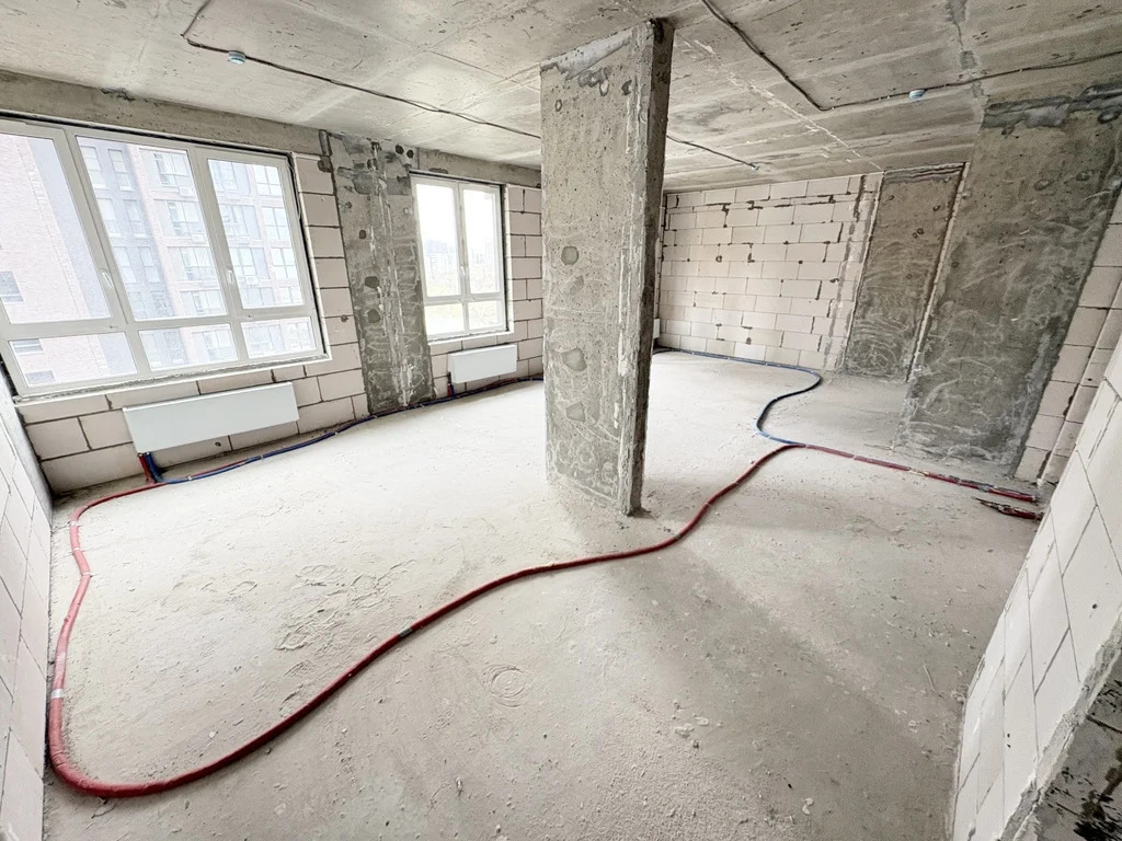 Планировка линейного типа, свободная, без несущих стен, кроме пилона. Квартира без отделки. Два с/у, две раздельные спальни, кухня-гостиная, балкон. Балкон с кухни с живописными видами. Общая площадь указана без учета площади балкона.