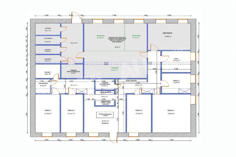 По планировке: 4 кабинета для приема пациентов. Зона ресепшн. Офис 57 м2. Кухня для сотрудников. Переговорная 20,2 м2. 3 с/у для пациентов и сотрудников.