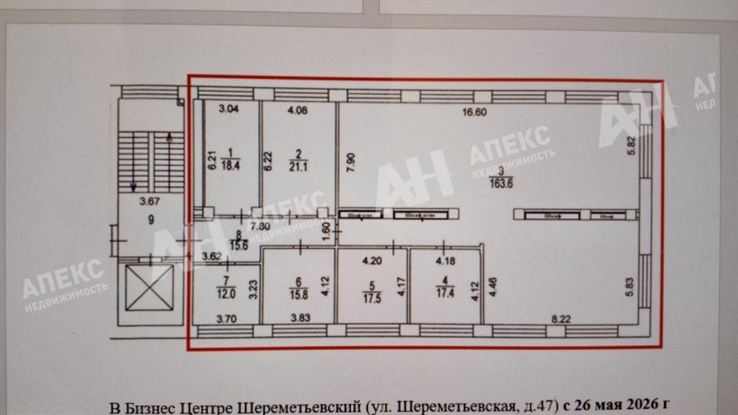 Лот №1083429 В аренду предлагается комфортабельный офис площадью 281,4 квадратных метра, расположенный на пятом этаже бизнес-центра по адресу: Шереметьевская, 47. Помещение предоставляется по выгодным рыночным ставкам.