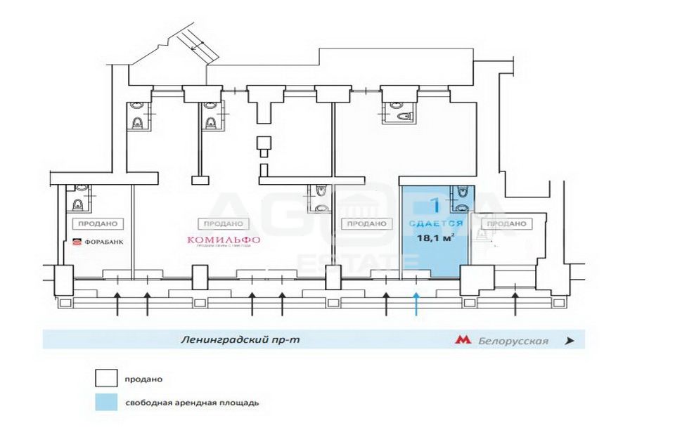Номер объекта: 547025. СТРИТ-РИТЕЙЛ 1-я линия домов Ленинградского проспекта. 1 минута пешком до станции метро Белорусская и Белорусского вокзала. АРЕНДА стрит-ритейл площадью 18,1 кв.м. Расположено на 1-м этаже. Отдельный вход с фасада. Помещение с ремонтом, городские коммуникации, вода, санузел, электричество 20 кВт. Реклама на фасаде. Суперинтенсивный трафик.