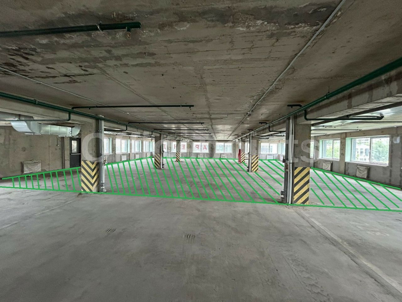 Помещение без отделки, открытая планировка. Высота потолка 2,5 м. 2 грузопассажирских лифта до 3 тонн. Нагрузка на пол 350 кг/м2. Есть свой подвод канализации и воды. Приточно-вытяжная система вентиляции, центральная система кондиционирования. В наличии многоуровневая парковка.