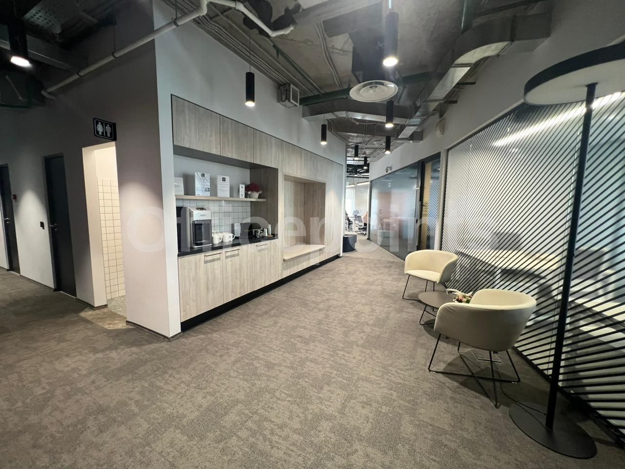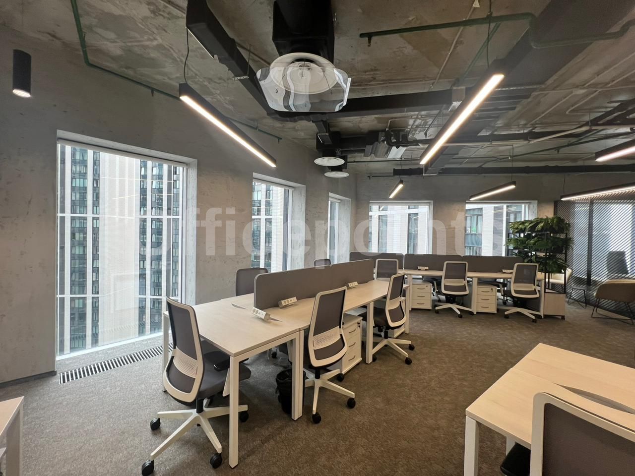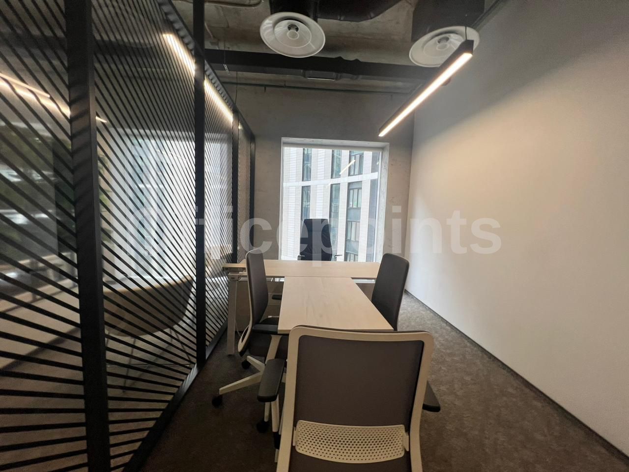 Сервисный офис представляет собой пространства премиум-класса. Оборудовано всем необходимое для работы и отдыха в перерывах. Вмещает до 17 рабочих мест, оборудовано переговорными и board-room. В помещении качественная офисная отделка с мебелью. Смешанная планировка, центральная система кондиционирования и приточно-вытяжная система вентиляции.