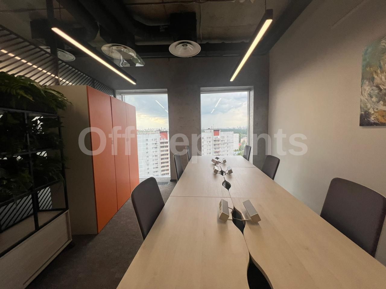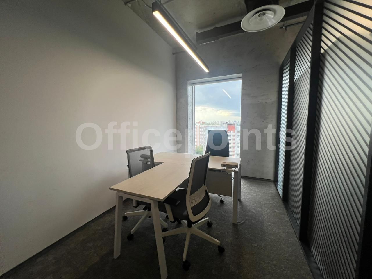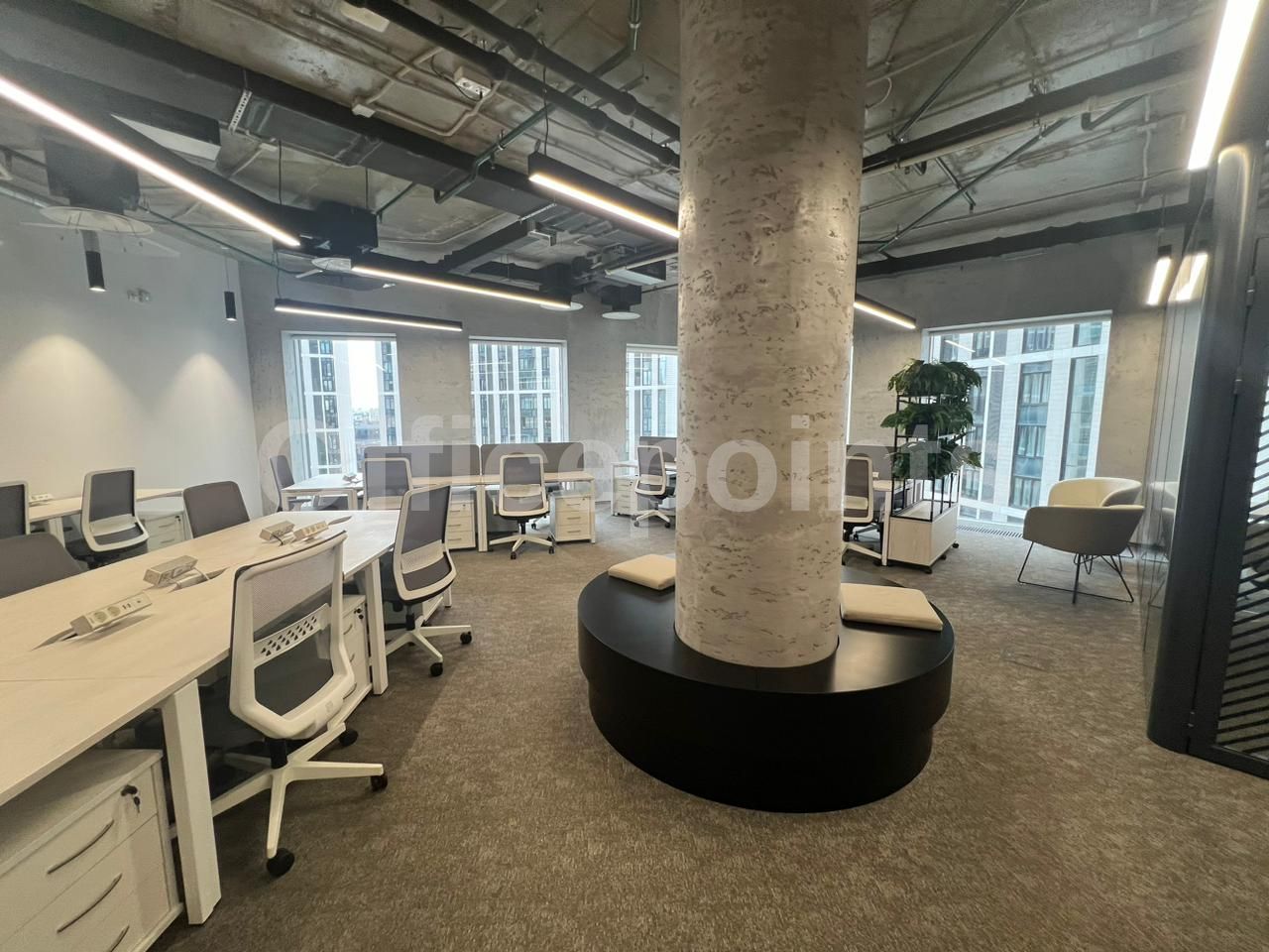 Сервисный офис представляет собой пространства премиум-класса. Оборудовано всем необходимое для работы и отдыха в перерывах. Вмещает до 17 рабочих мест, оборудовано переговорными и board-room. В помещении качественная офисная отделка с мебелью. Смешанная планировка, центральная система кондиционирования и приточно-вытяжная система вентиляции.