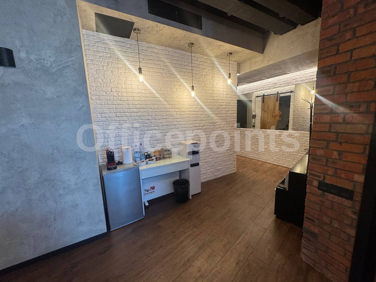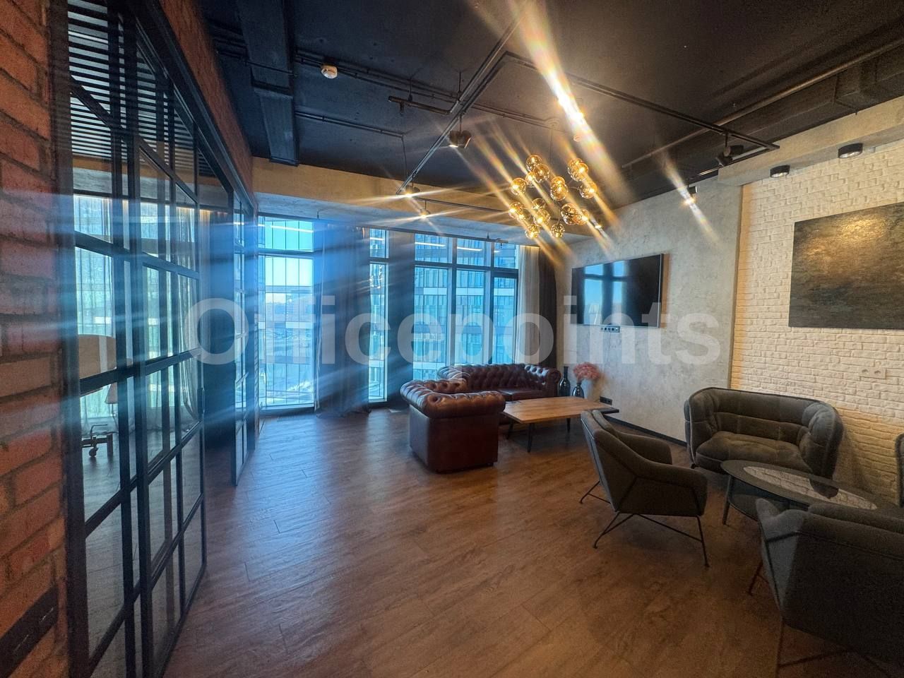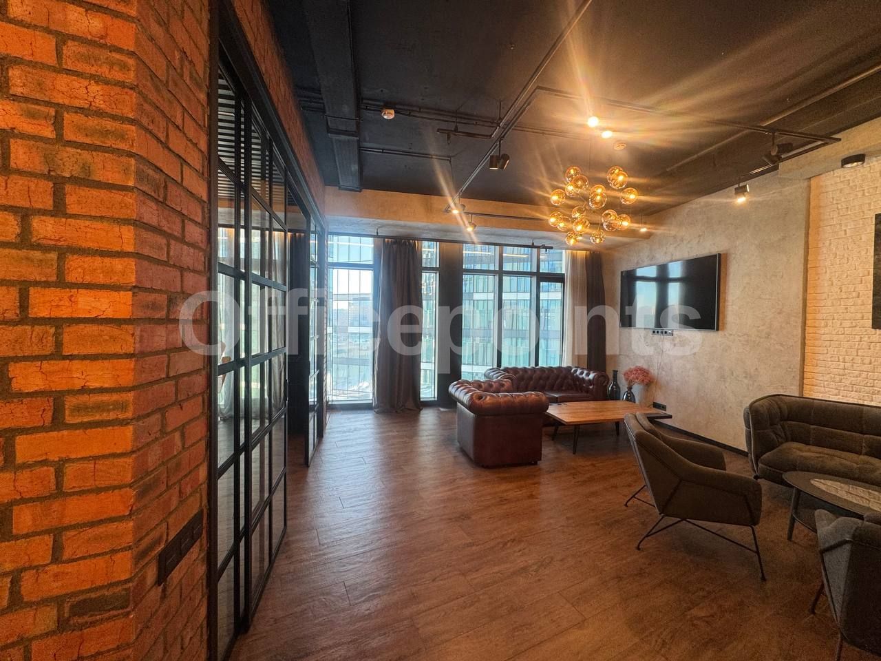Помещение с отделкой в современном стиле, смешанная планировка (open space, кабинет руководителя, переговорная, с/у, кухня). Центральная система кондиционирования и приточно-вытяжная система вентиляции. В наличии подземная парковка (35 000 руб. в месяц за м/место).