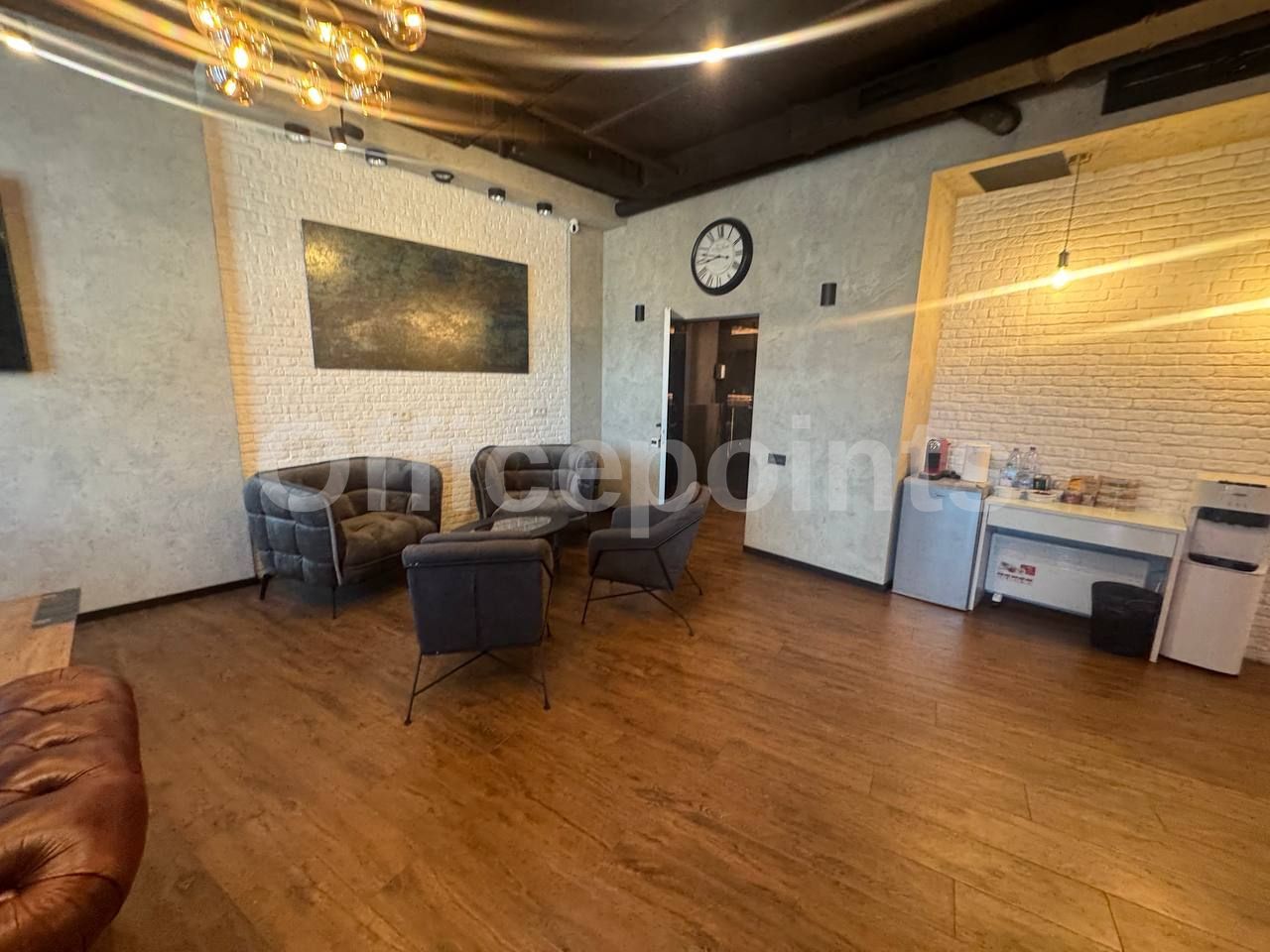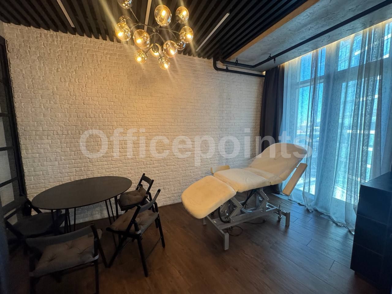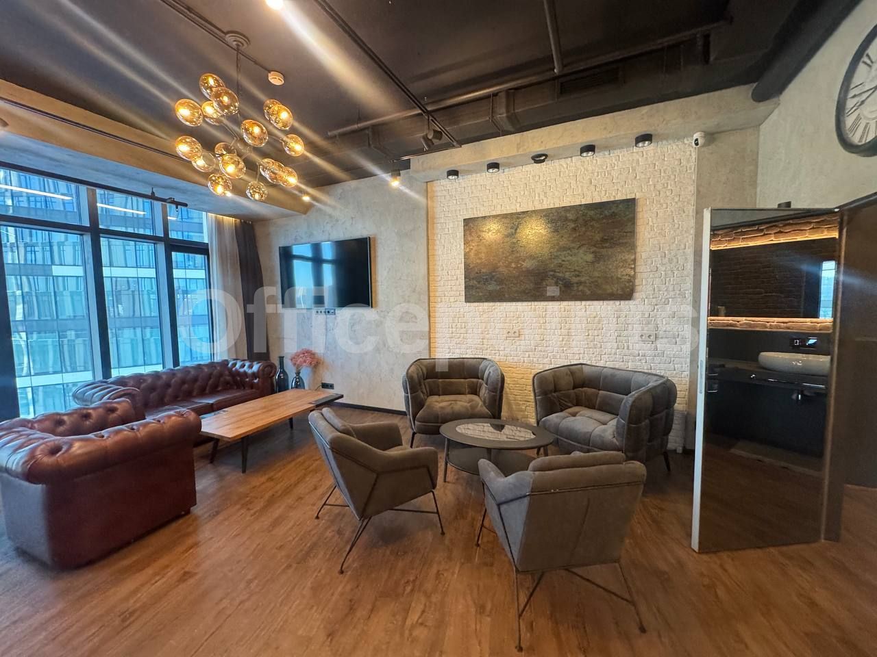 Помещение с отделкой в современном стиле, смешанная планировка (open space, кабинет руководителя, переговорная, с/у, кухня). Центральная система кондиционирования и приточно-вытяжная система вентиляции. В наличии подземная парковка (35 000 руб. в месяц за м/место).