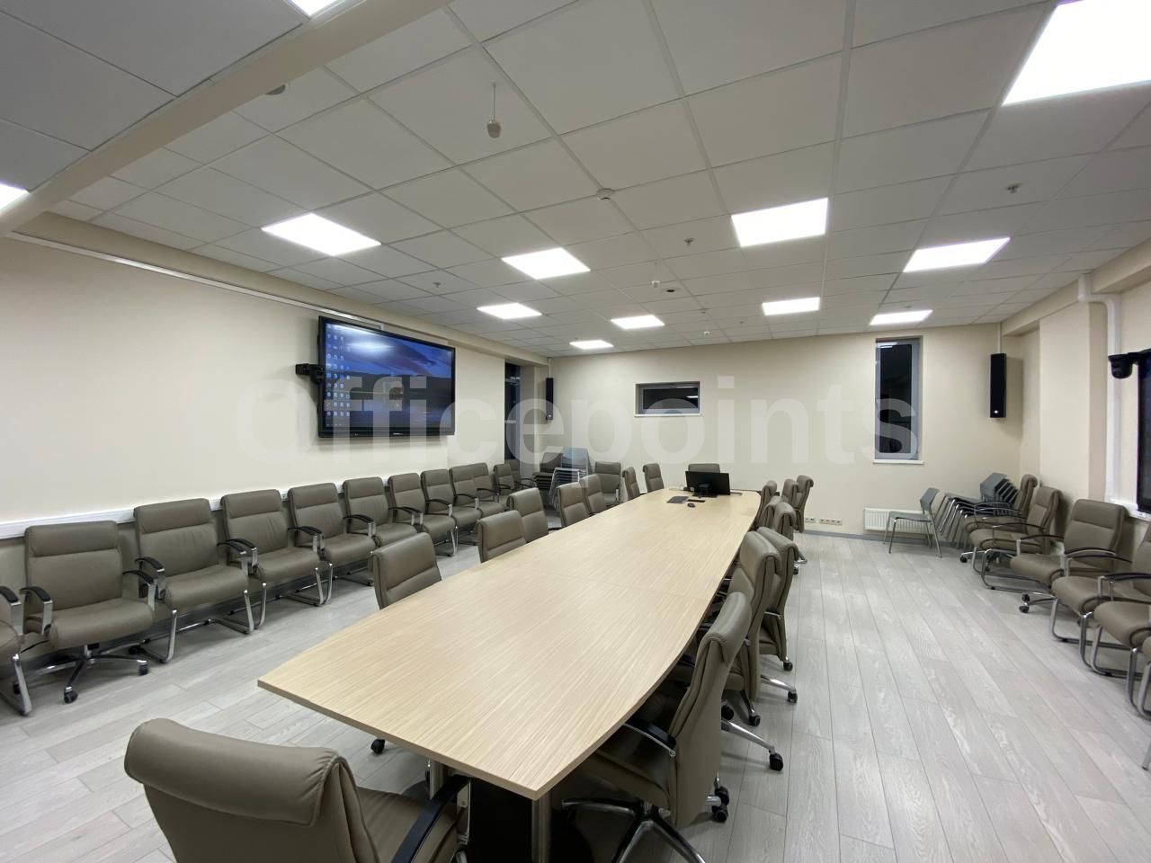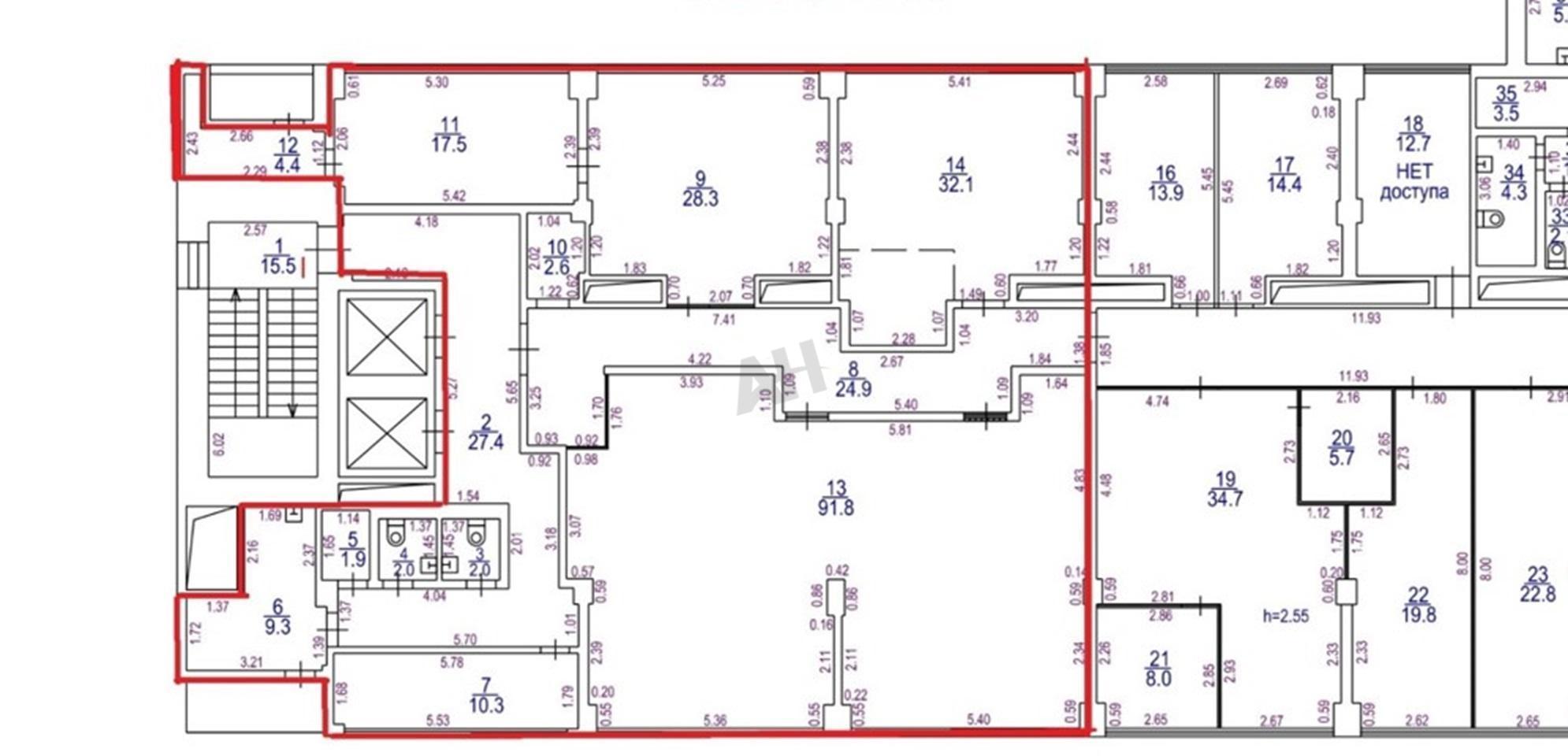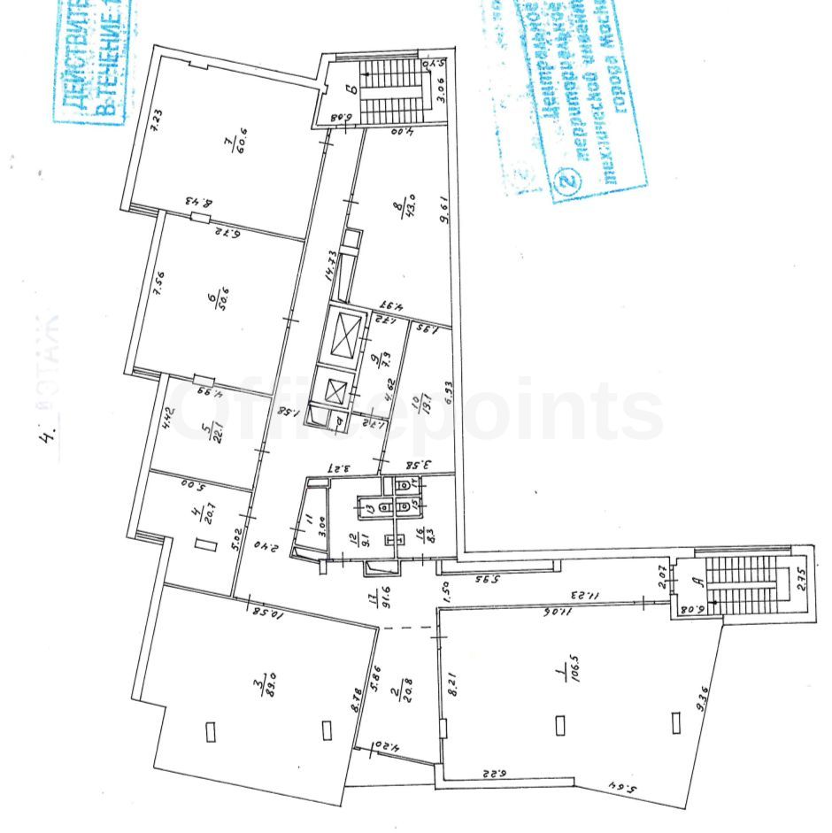 – В помещении стандартная офисная отделка, кабинетная планировка.