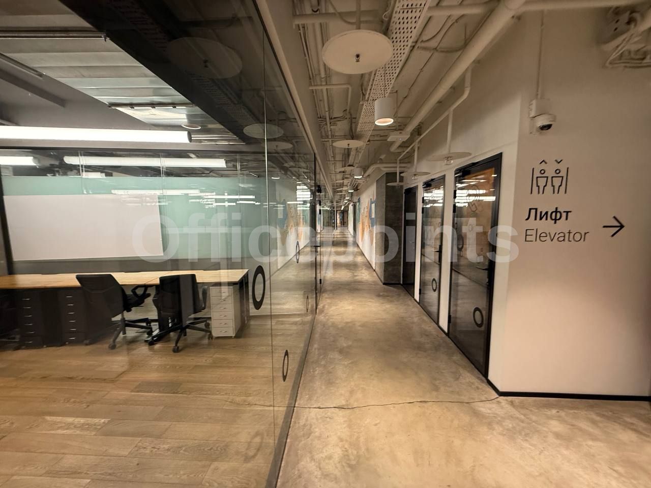 В помещении выполнена качественная офисная отделка, смешанная планировка. Комплектация офисной мебелью. 26 рабочих мест. Центральная система кондиционирования и приточно-вытяжная система вентиляции. Панорамные окна. В наличии подземная парковка (36 000 руб. в месяц за м/место).