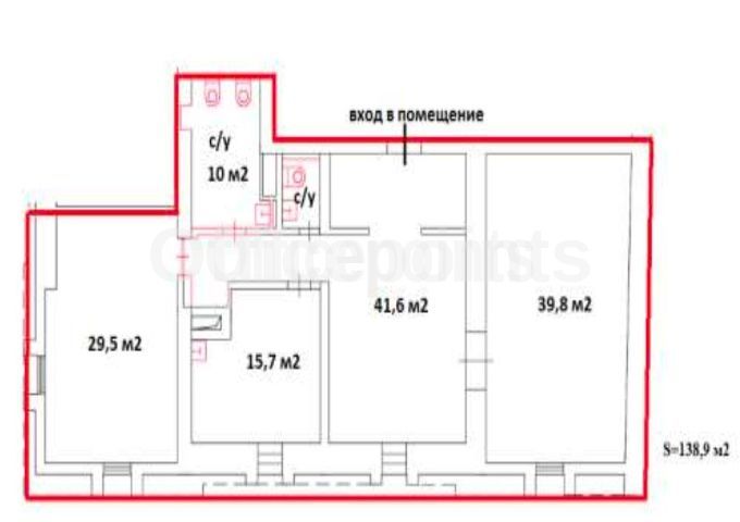 – Помещение без отделки, кабинетная планировка (4 кабинета, 2 с/у).