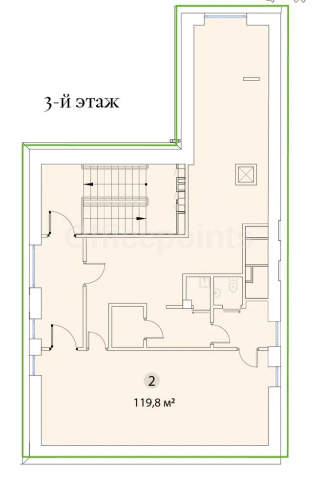 – Помещение без отделки, открытая планировка.