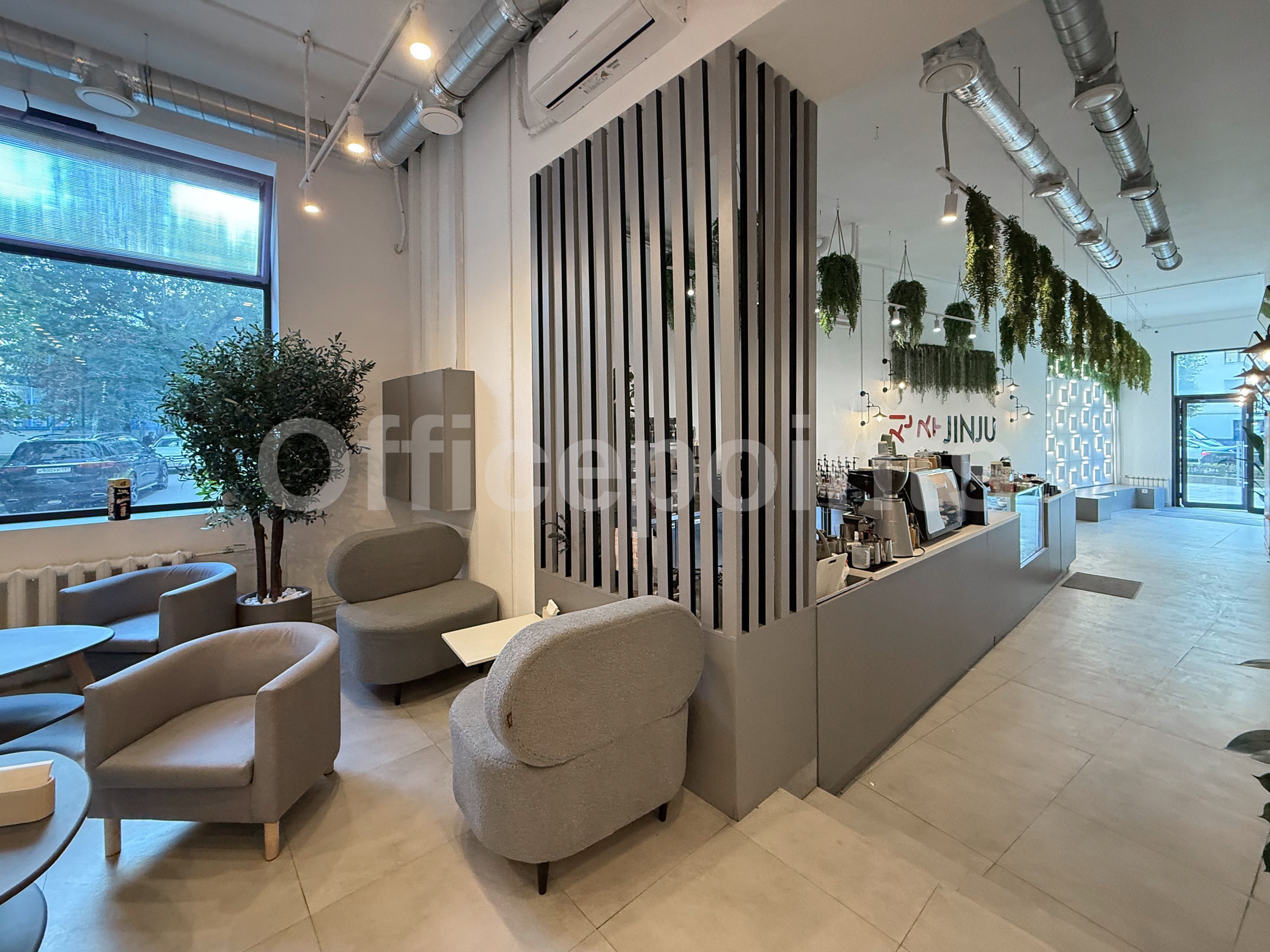 В помещениях офисная отделка, смешанная планировка. Центральная система кондиционирования и приточно-вытяжная система вентиляции. В наличии наземная парковка.