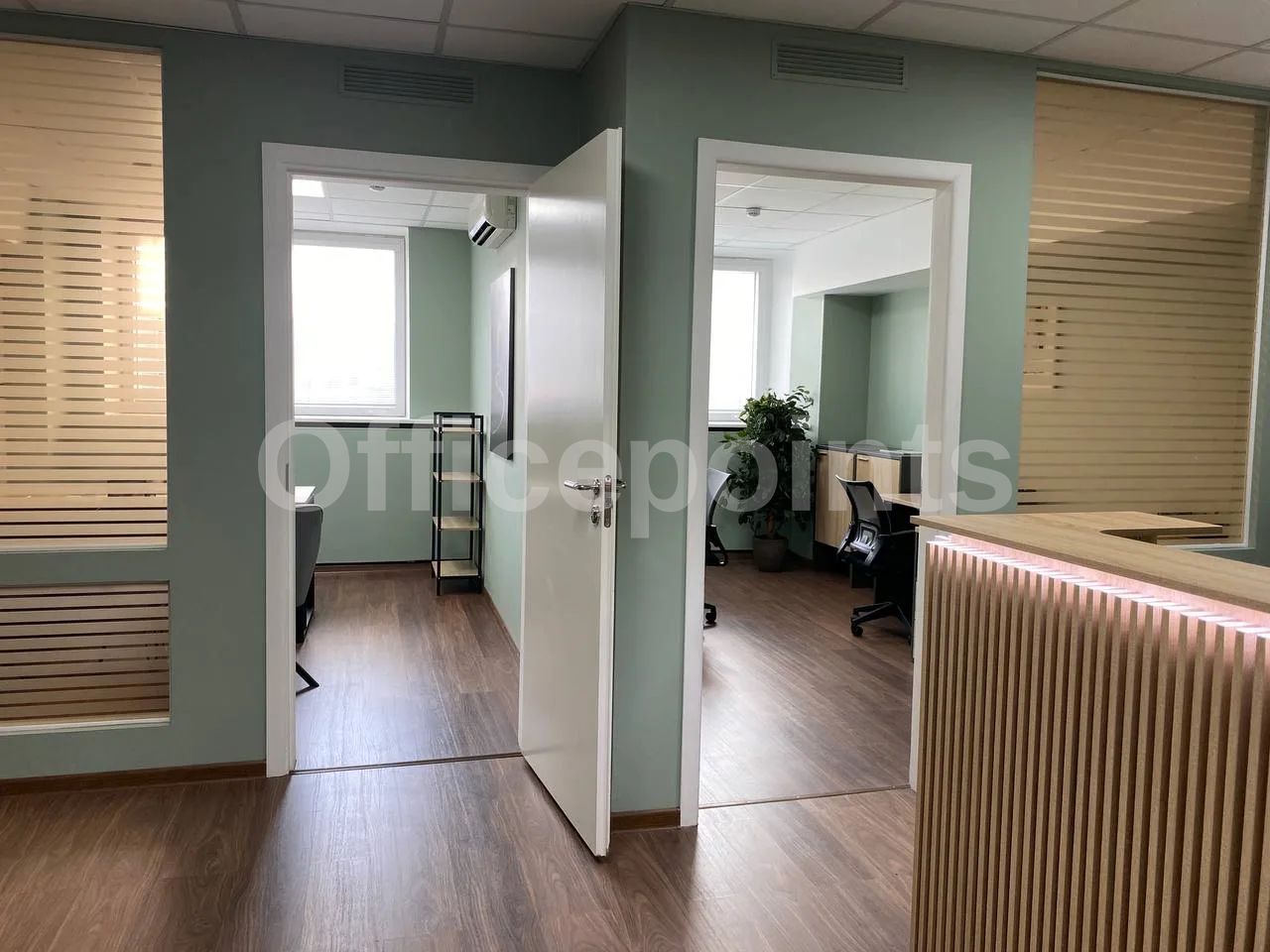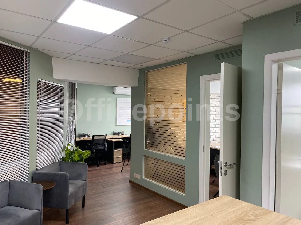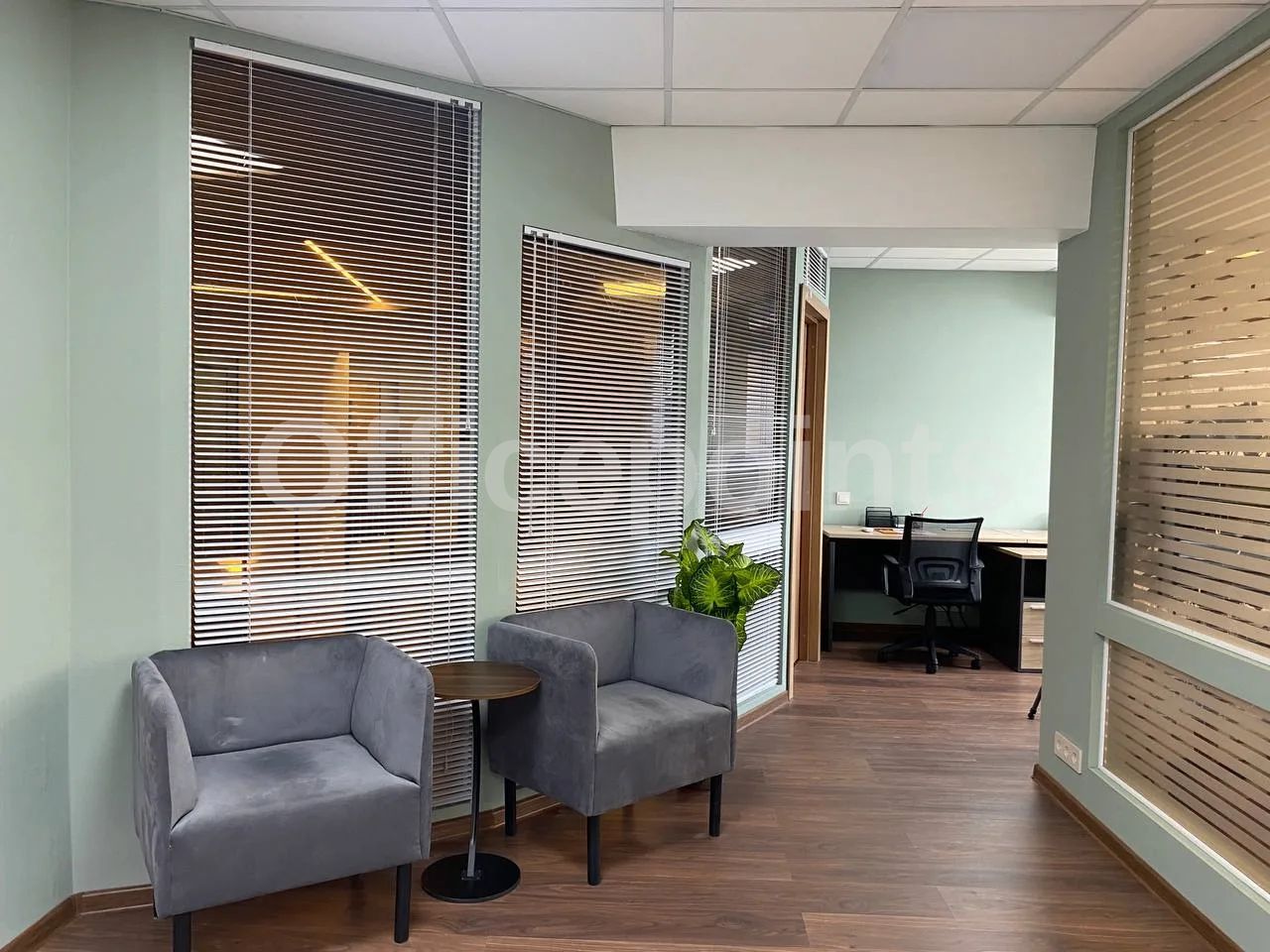 – В помещении стандартная офисная отделка, смешанная планировка, с мебелью.