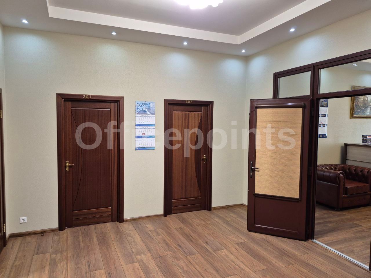 – В помещениях стандартная офисная отделка, кабинетная планировка.