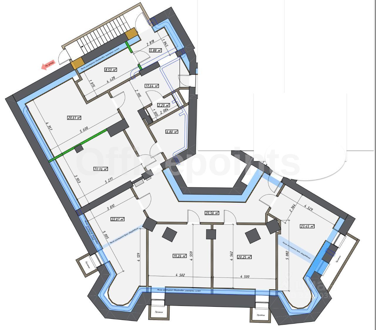 – Помещение с качественной отделкой, кабинетная планировка (7 кабинетов, с/у).