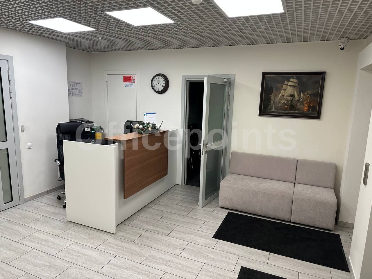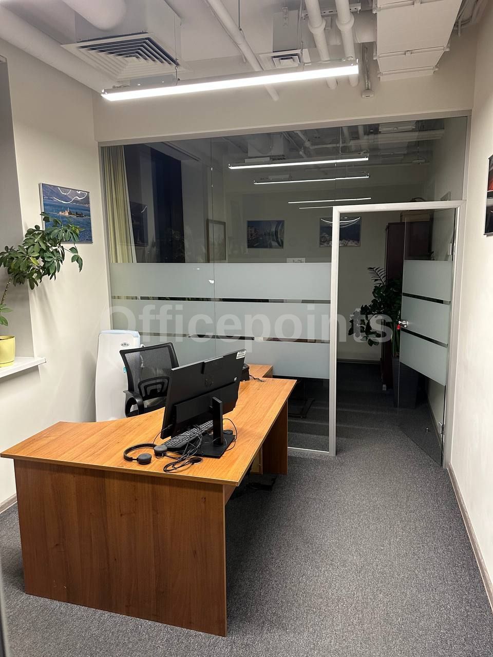 – В помещении стандартная офисная отделка, смешанная планировка.
