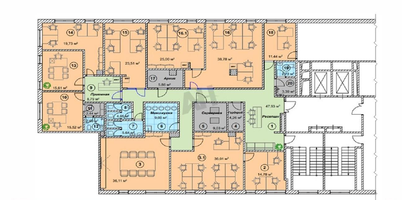 - Офис с премиальной отделкой и лучшими видовыми характеристиками, смешанной планировки.
