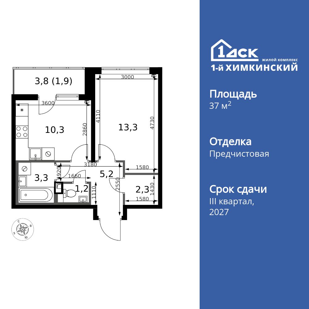 Id 63097. Продается просторная светлая 1к квартира в ЖК Зеленые аллеи.