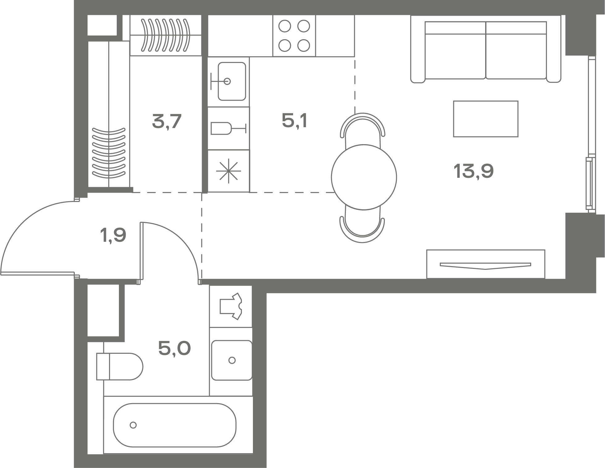 Продаются 2-к апартаменты площадью 42.6 кв.м. на 7-м этаже 29 этажного дома в "НАМЕТКИН ТАУЭР" от ГК ОСНОВА.
