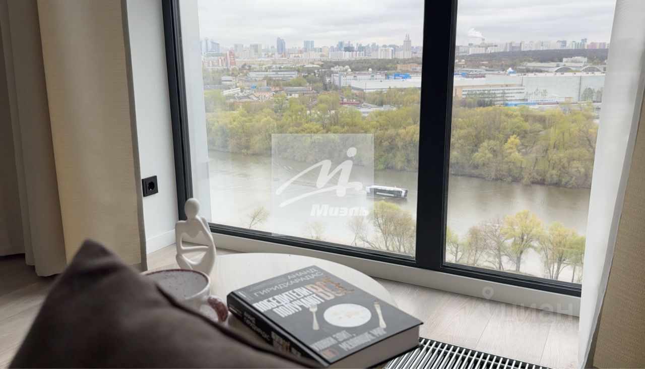Лучшая видовая квартира в комплексе «Сидней». Панорамный вид на Москву-реку и проплывающие трамвайчики.