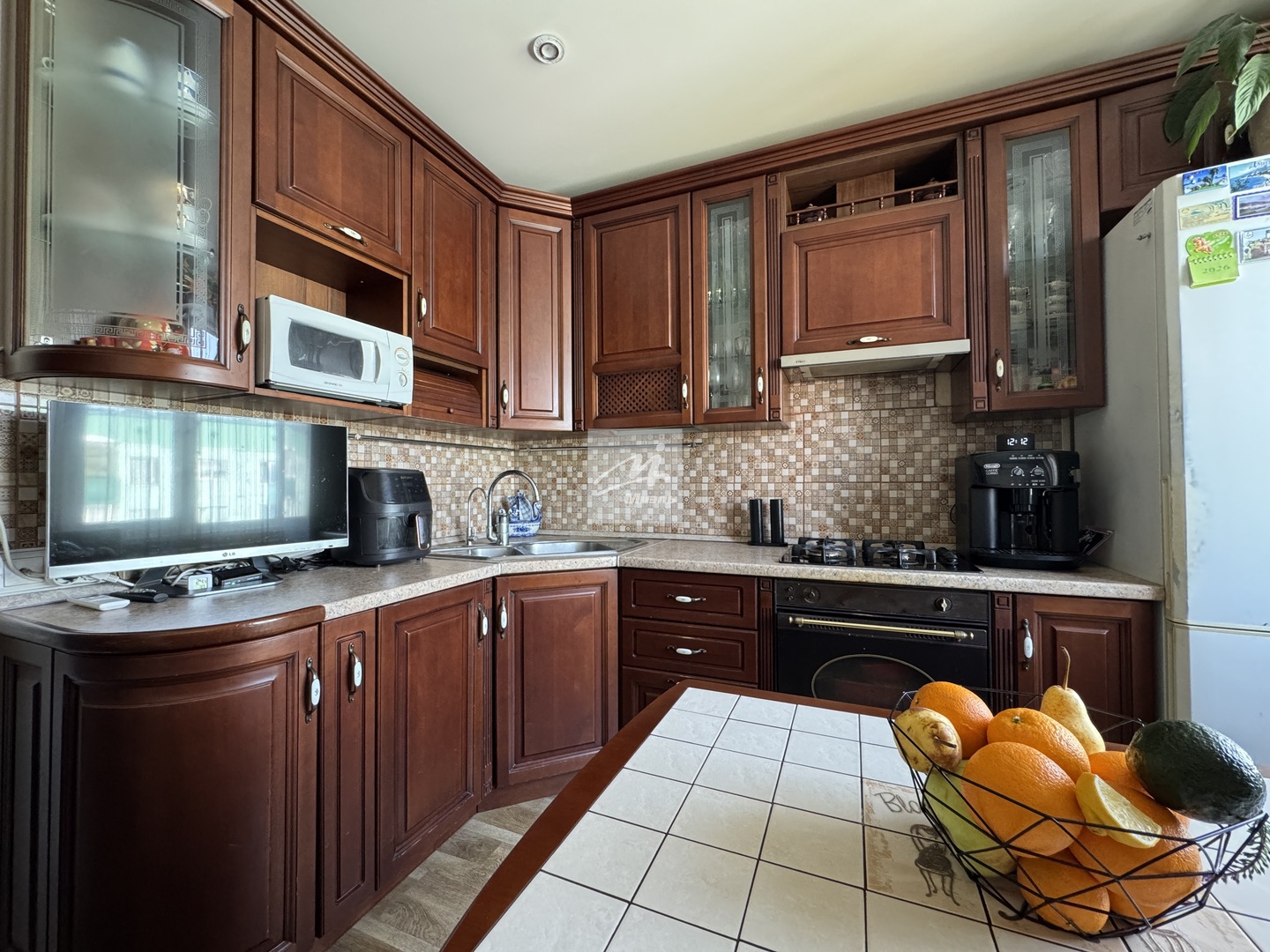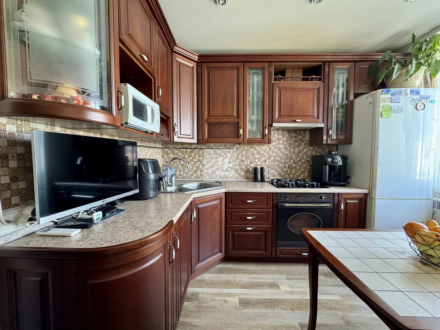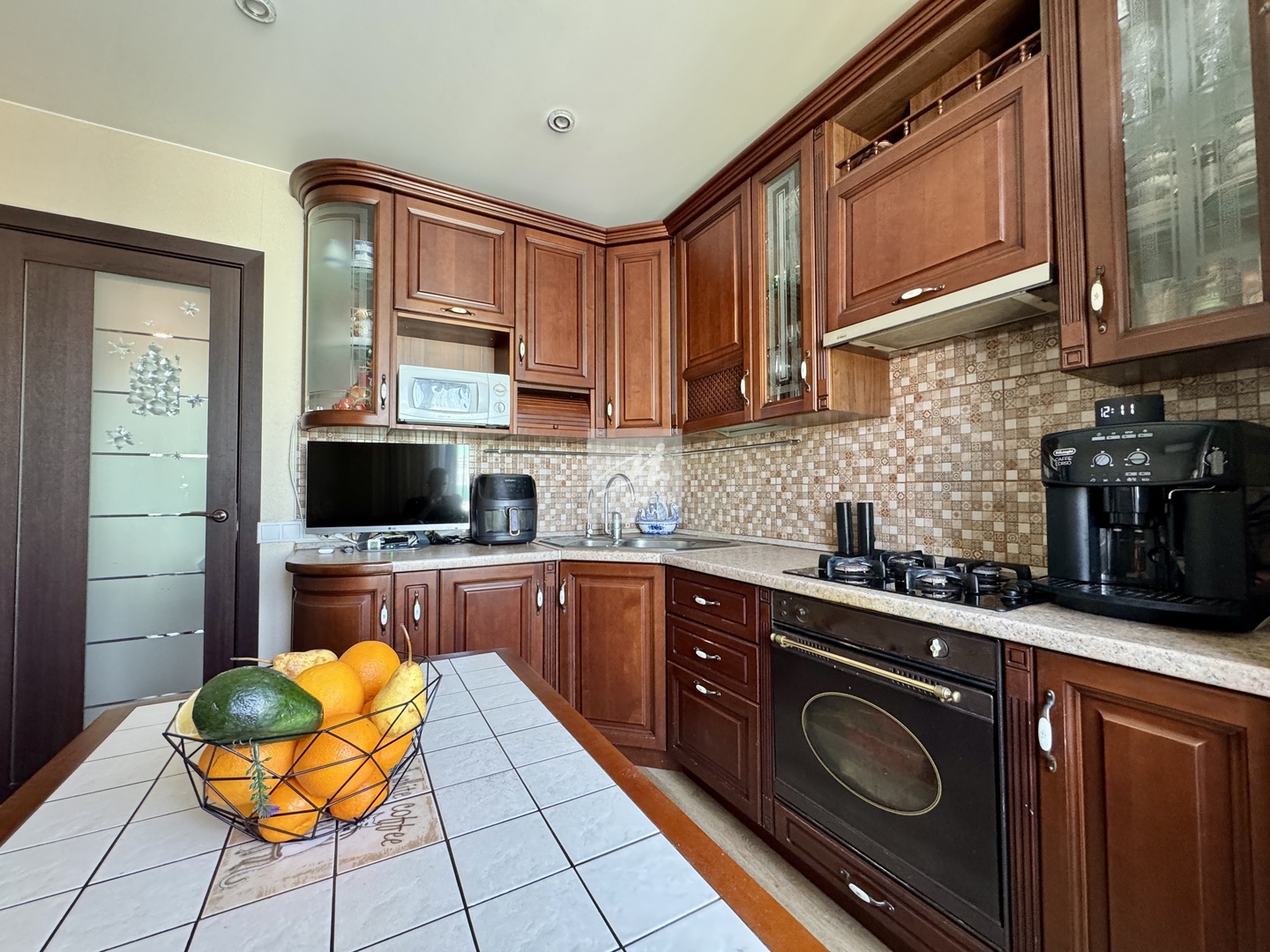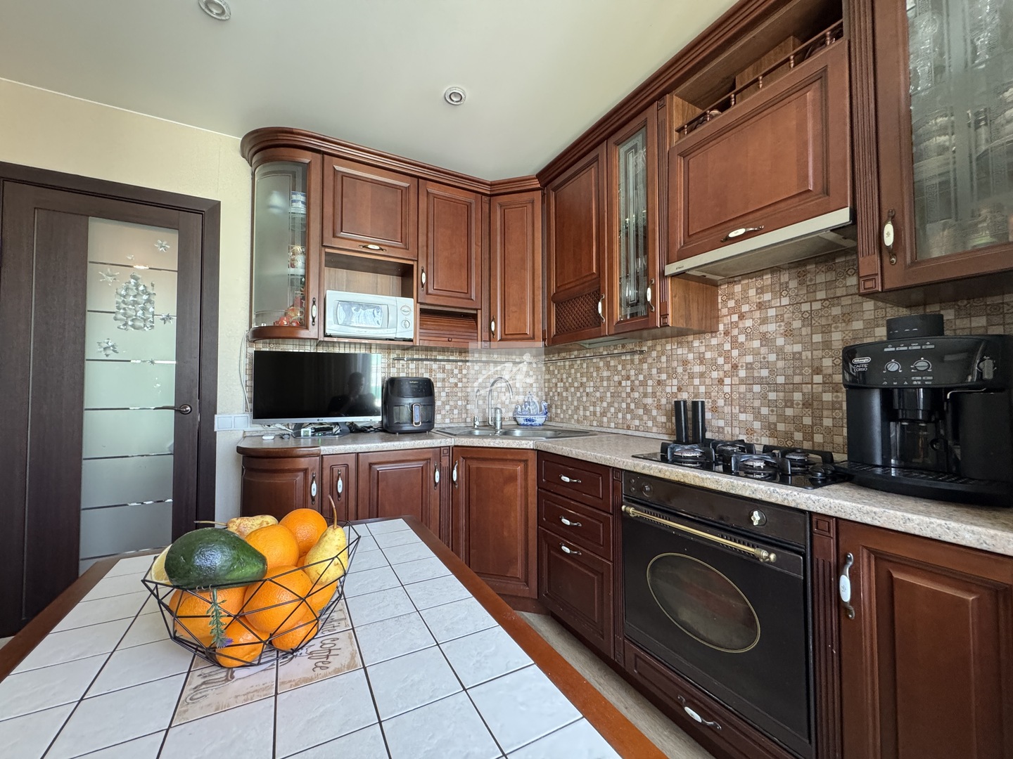 Квартира площадью 56 кв. м. (в ергн 52, 7 кв. м. ). зал 17, 3 кв. м. (шкаф-купе 4 секционный, кондиционер, стол компьютерный, тумба, журнальный столик, люстра), комната 13, 3 кв. м. с лоджией 3, 3 кв. м, кухня 8, 6 кв.м. (кухонный гарнитур, варочная панель, духовой шкаф, вытяжка, кухонный уголок, стулья, столик на колесах), коридор 9 кв.м, ванная 3,1 кв.м, раздельный санузел 1 кв.м.