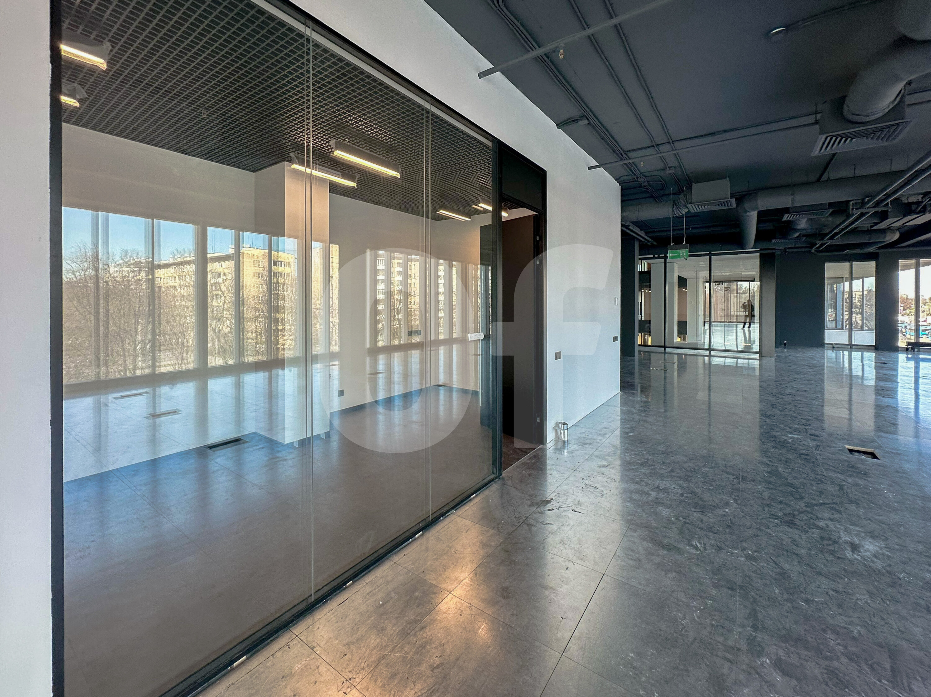 Помещение с функциональной смешанной планировкой. Система «умный дом». Панорамное остекление. Пространство позволяет организовать зоны под переговорные, кухни, санузлы и серверные.