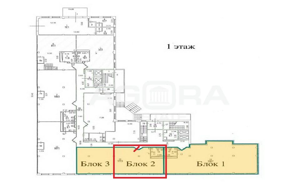 Офисное помещение площадью 104 м2 (блок 2 на плане этажа), расположено в здании БЦ класса В+ в районе Коптево (САО), близко от м.Водный стадион, Коптево, Балтийская. Помещение находится на 1-м этаже. Высота потолков в офисе 3,2 м, отдельный вход. Большие панорамные окна делают офис светлым, просторным и визуально увеличивают пространство. Есть мокрая точка. Коммуникации – центральные. С ремонтом.